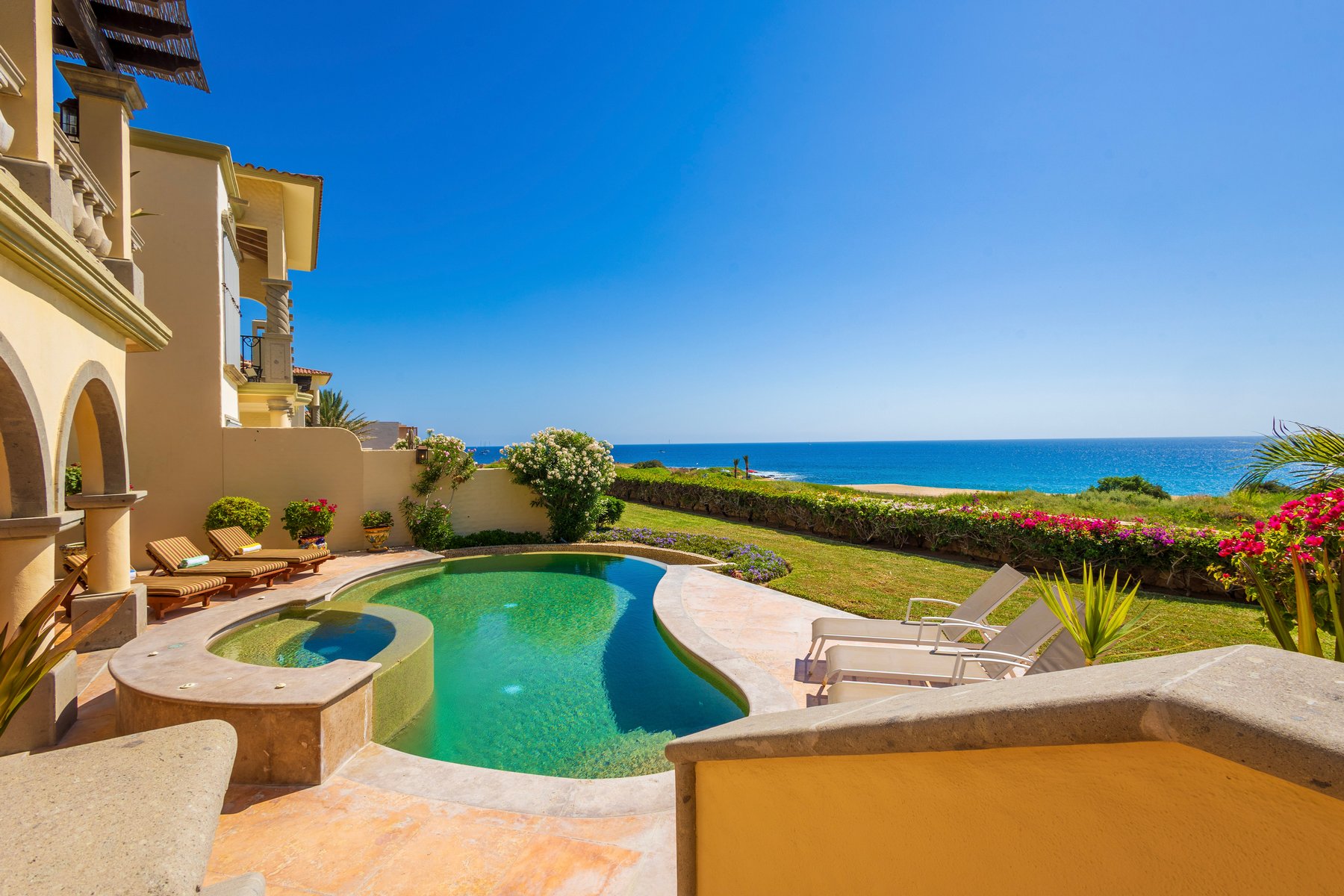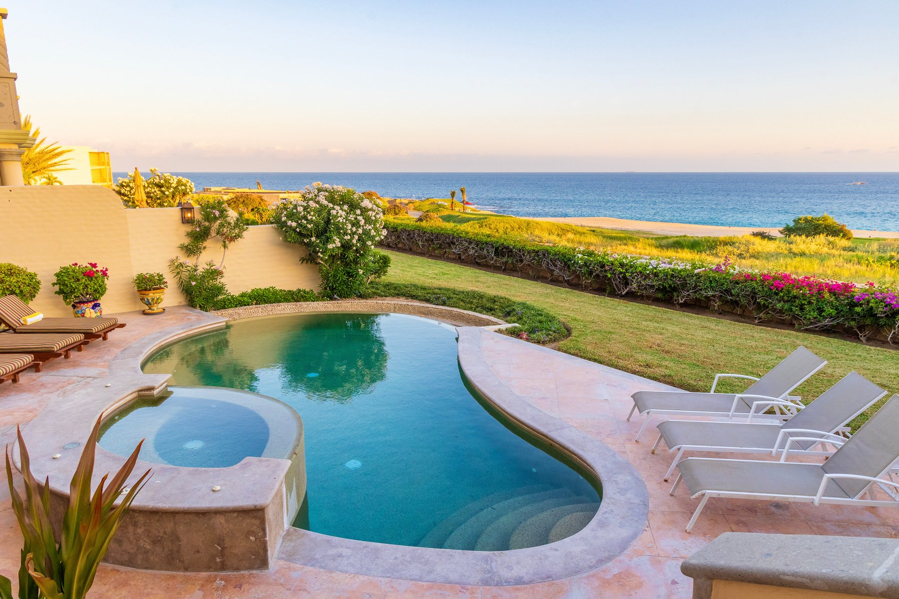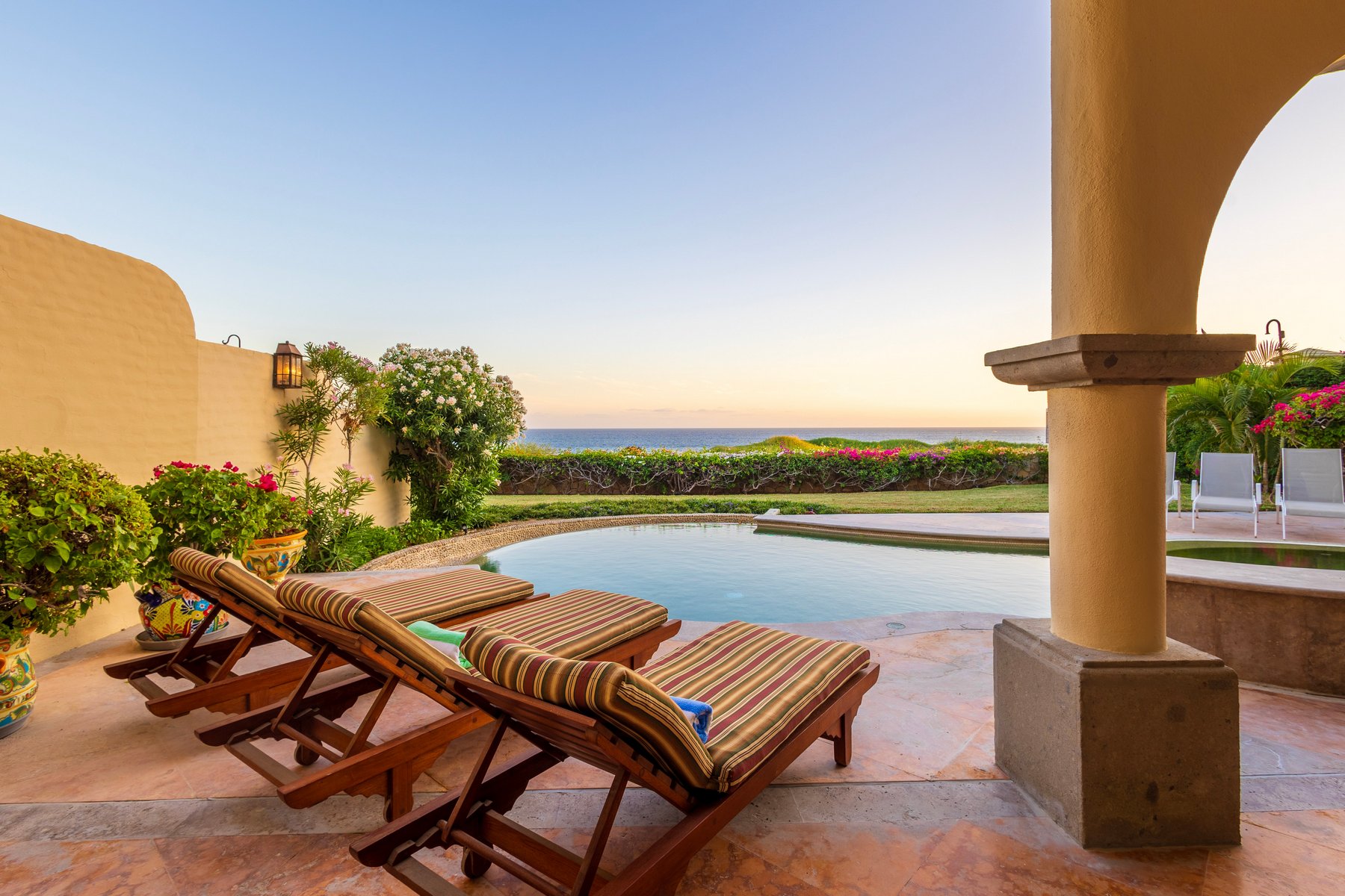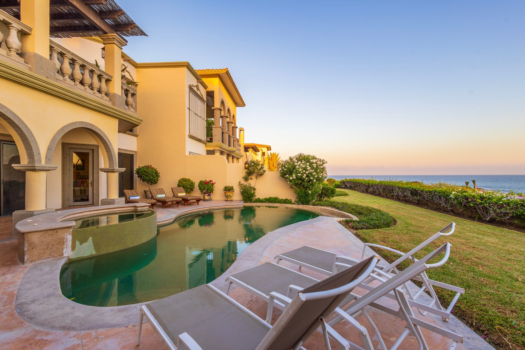 Casa Mariposa is well suited for couples or small groups of up to six seeking a Cabo San Lucas beachfront villa rental in Cabo del Sol with direct swimmable beach access, a private pool and jacuzzi above the water, and Hacienda interiors that carry genuine warmth. Our dedicated concierge team coordinates golf tee times, chef services, and all pre-arrival and post-arrival planning.