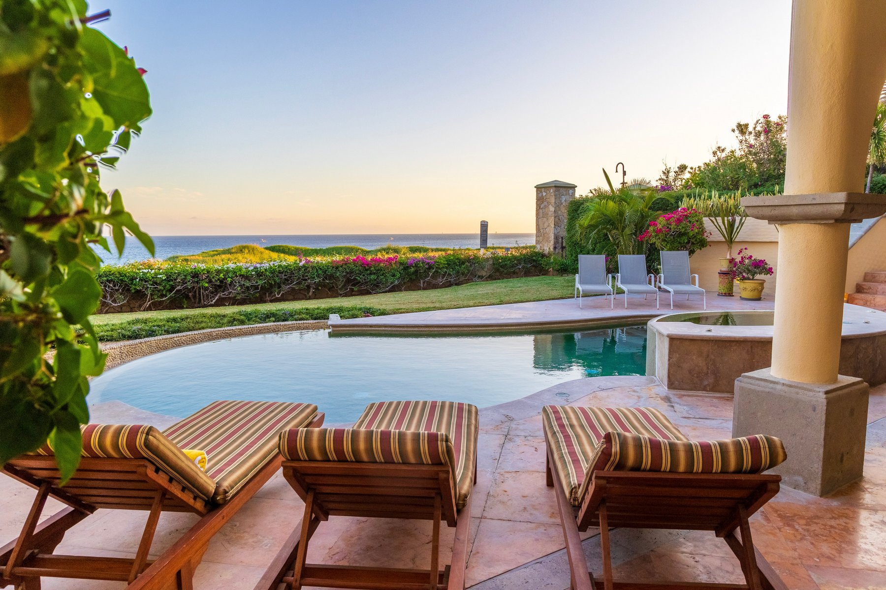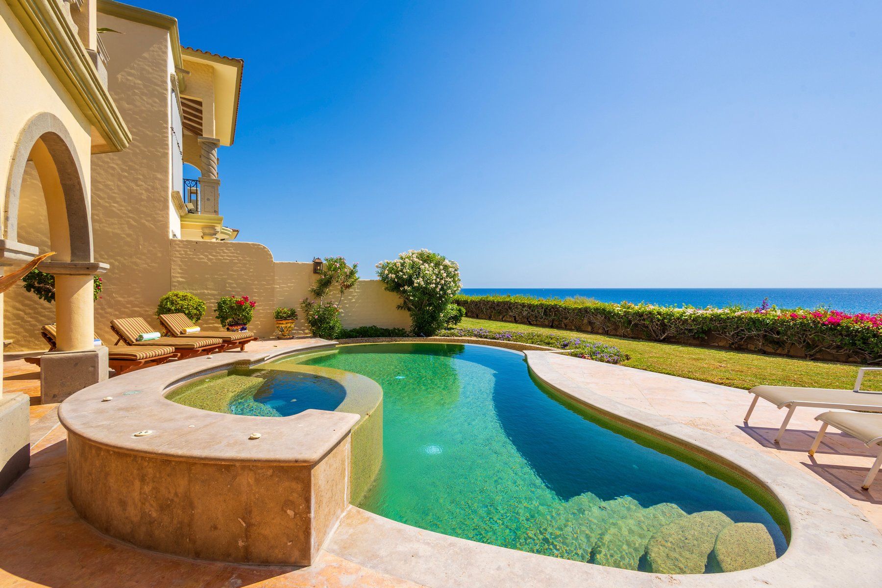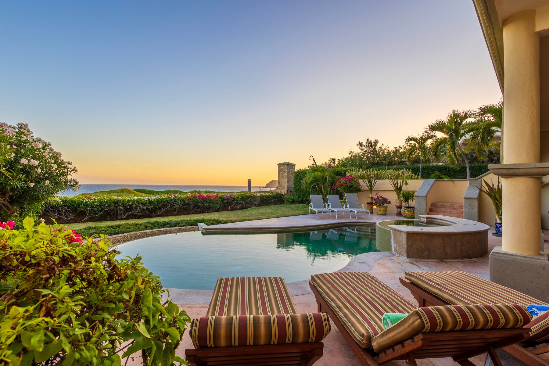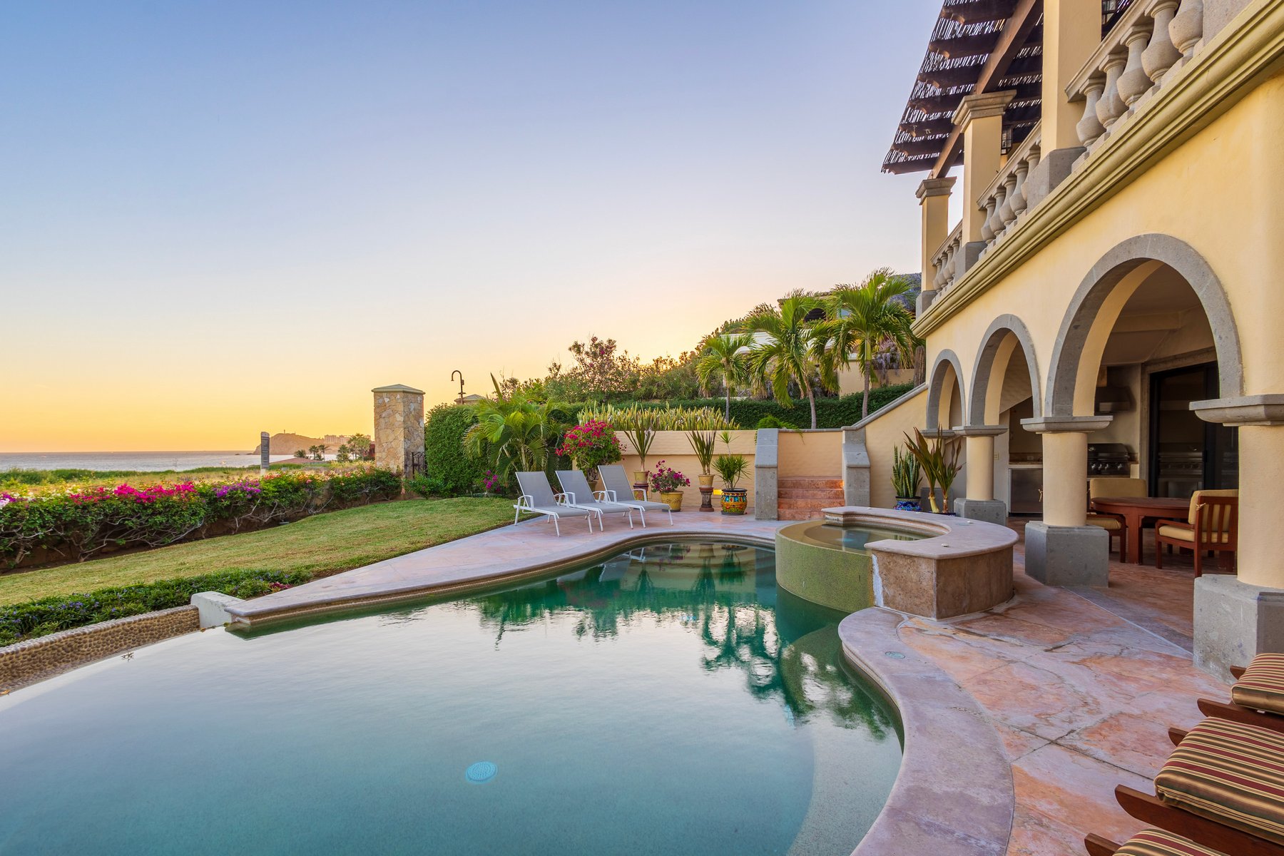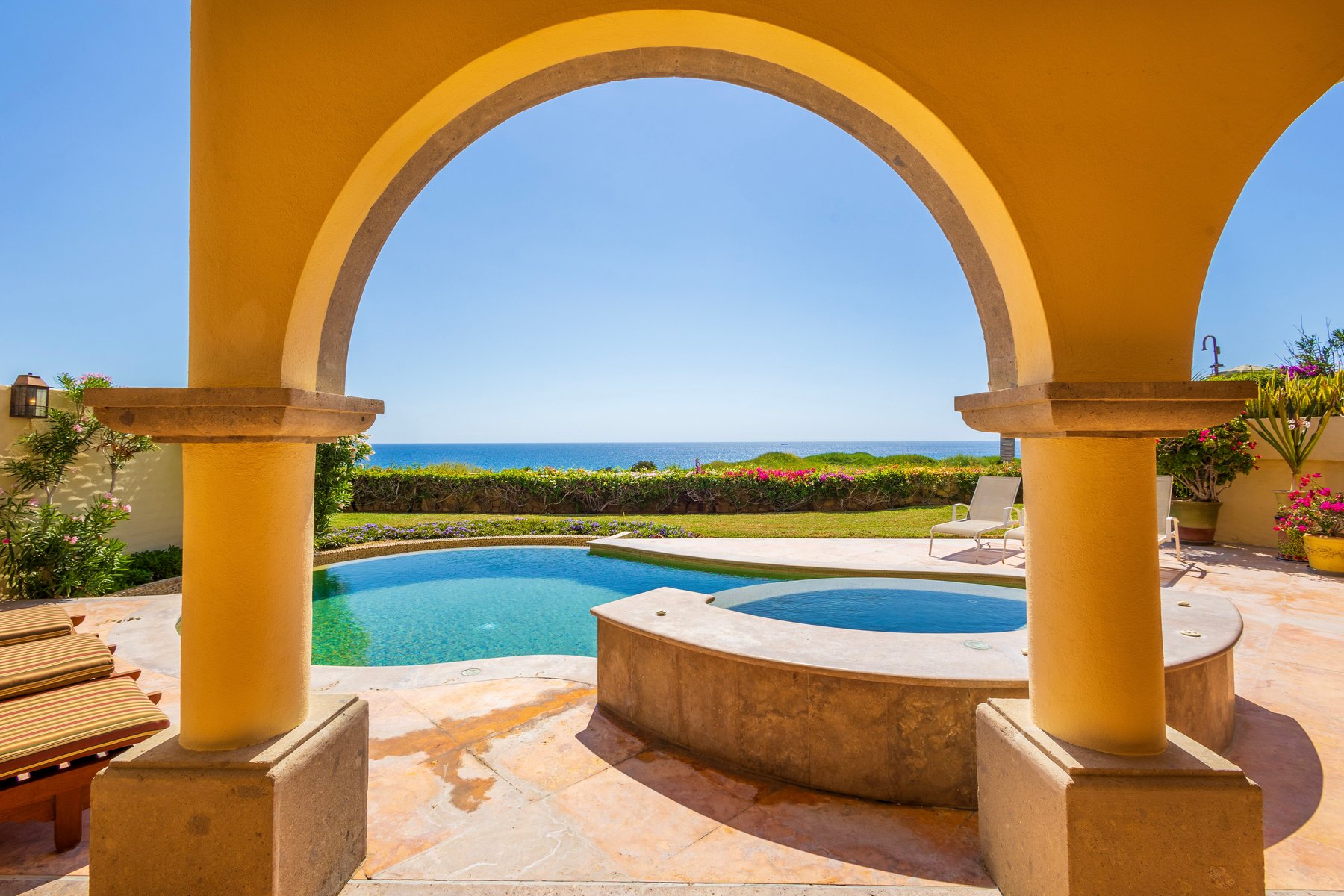 Casa Mariposa is well suited for couples or small groups of up to six seeking a Cabo San Lucas beachfront villa rental in Cabo del Sol with direct swimmable beach access, a private pool and jacuzzi above the water, and Hacienda interiors that carry genuine warmth. Our dedicated concierge team coordinates golf tee times, chef services, and all pre-arrival and post-arrival planning.