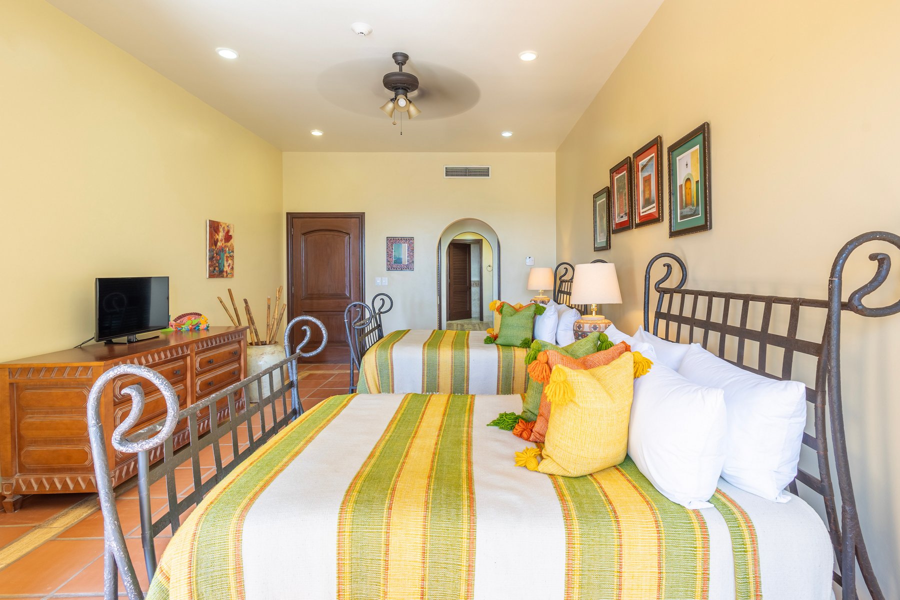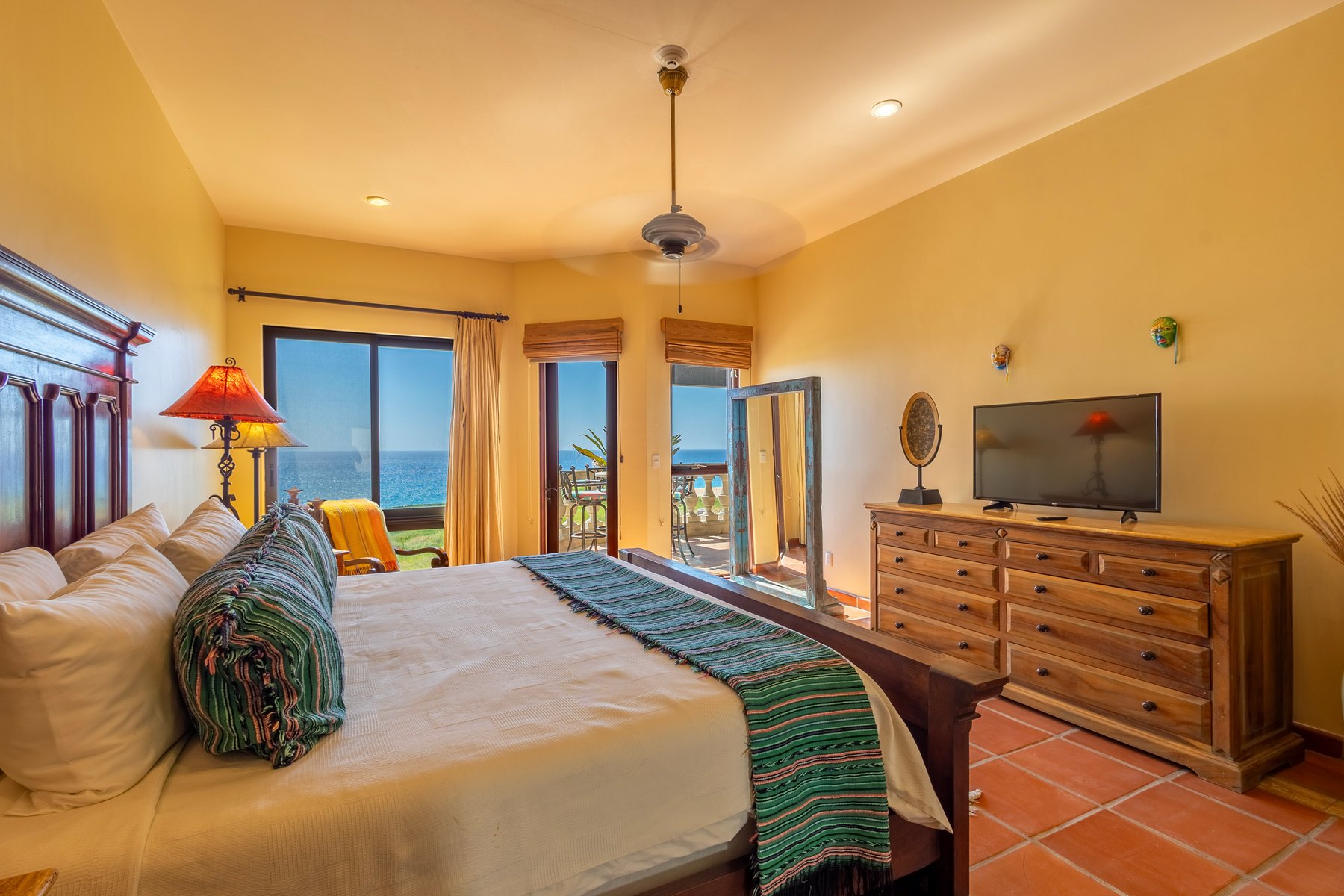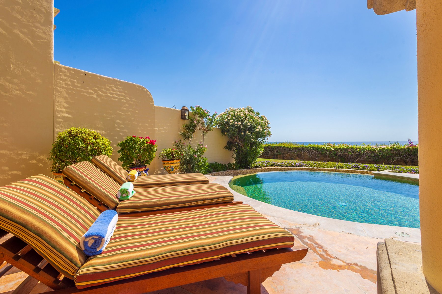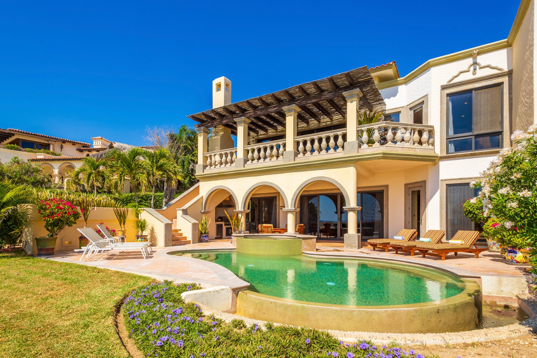 Casa Mariposa is well suited for couples or small groups of up to six seeking a Cabo San Lucas beachfront villa rental in Cabo del Sol with direct swimmable beach access, a private pool and jacuzzi above the water, and Hacienda interiors that carry genuine warmth. Our dedicated concierge team coordinates golf tee times, chef services, and all pre-arrival and post-arrival planning.