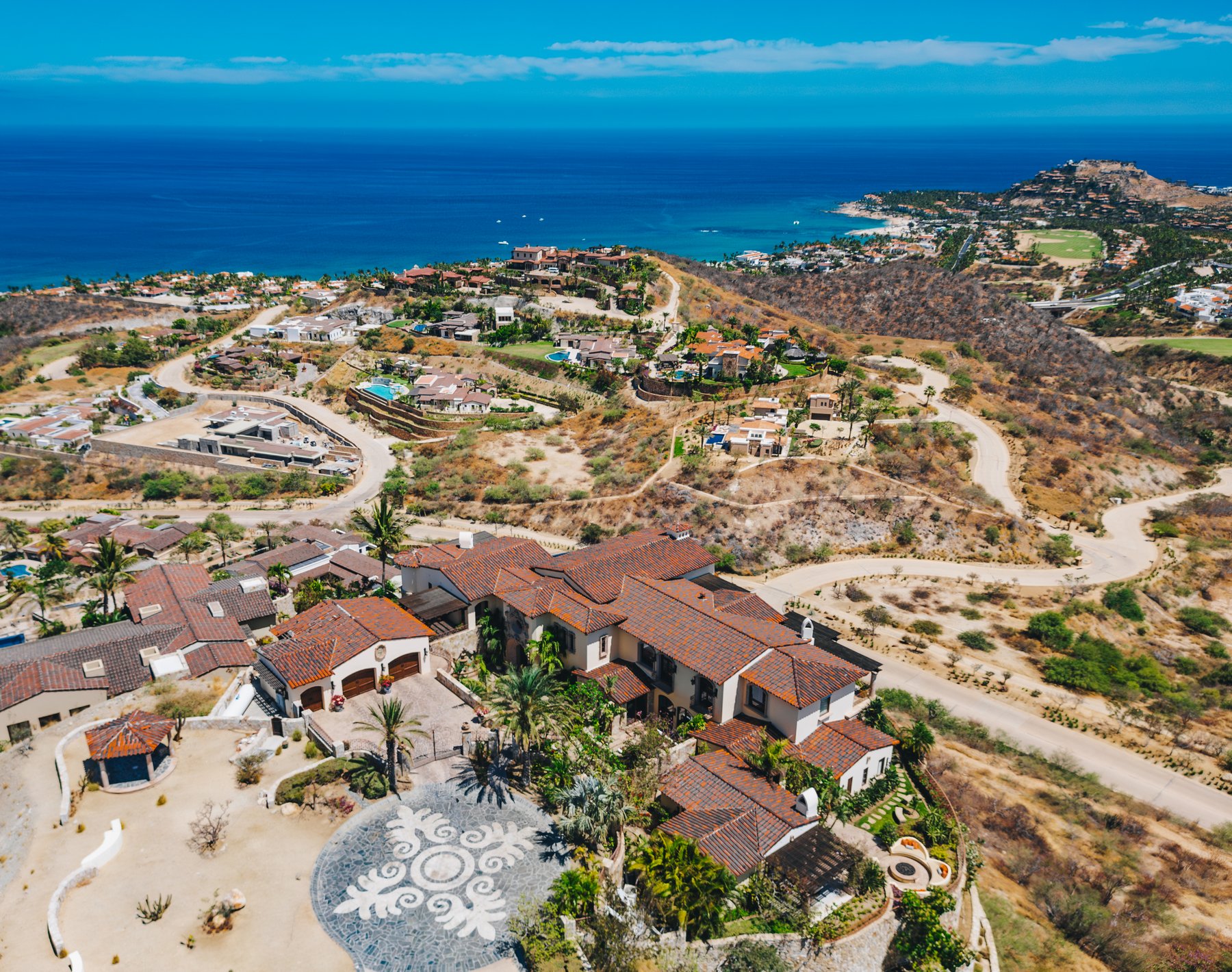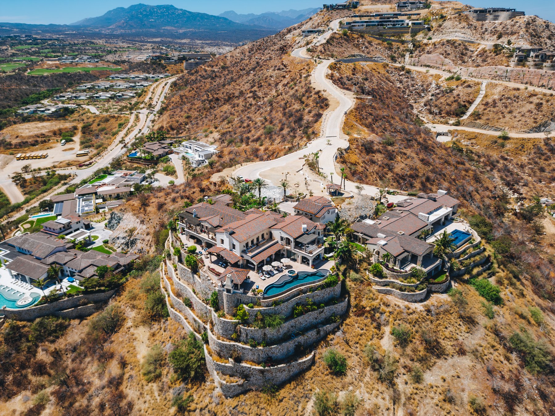Casa Trauber is a six-bedroom villa rental in the gated Querencia community in San José del Cabo — 12,500 square feet in one of the most architecturally coherent private communities on the Baja Peninsula. Six bedrooms, eleven baths, and sixteen guests in an estate that reads differently from Pedregal villas of comparable size: Querencia is quieter, more residential, and architecturally disciplined in a way that shapes every property within it.