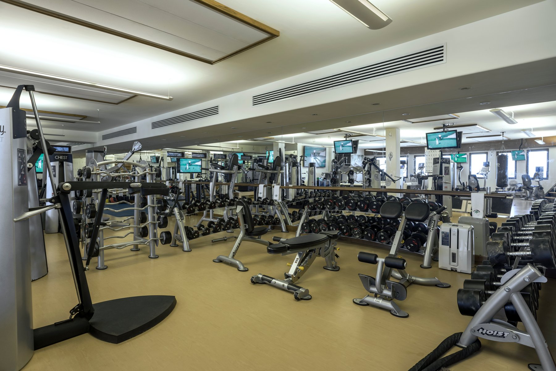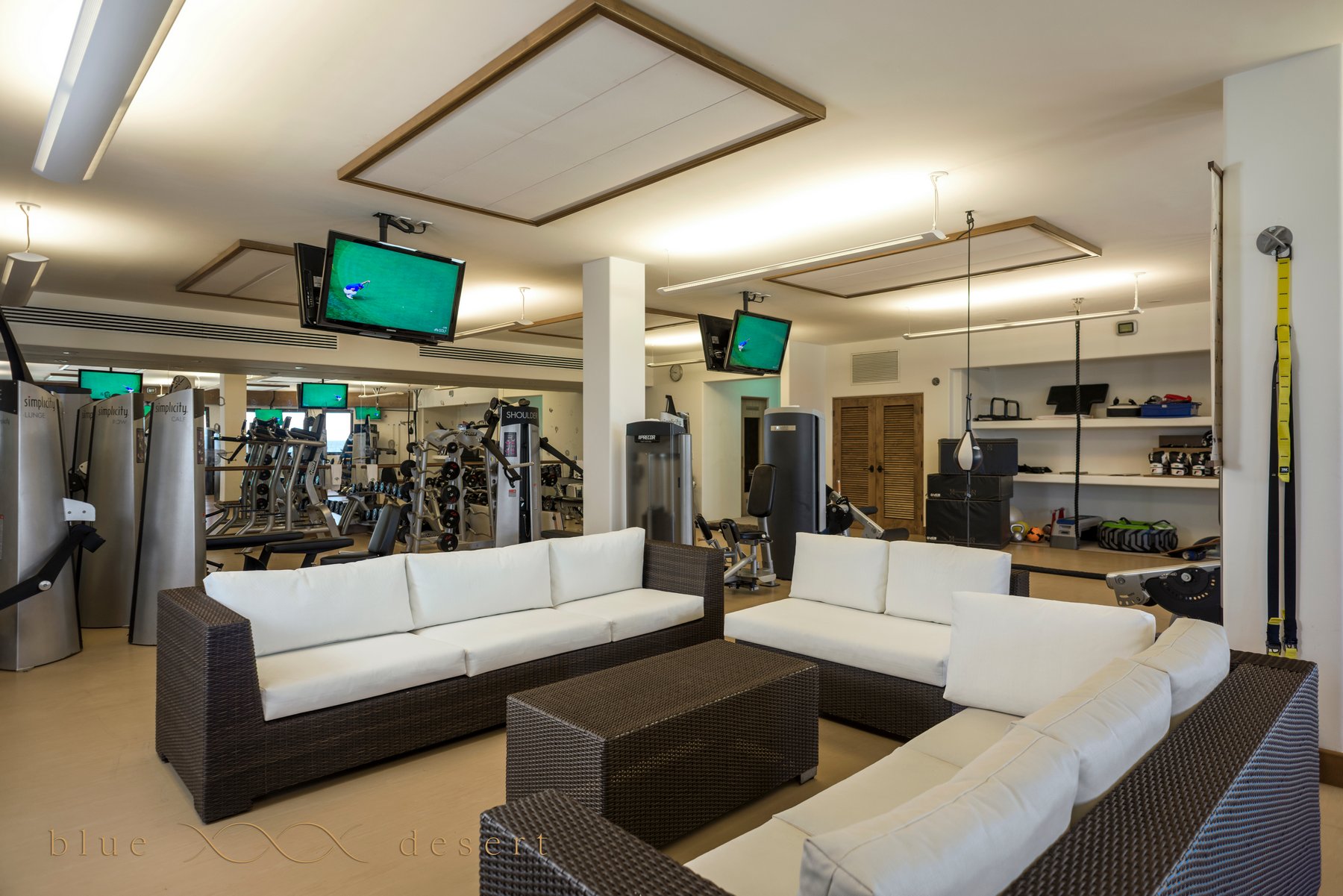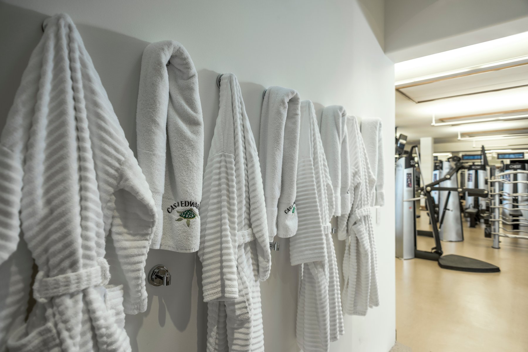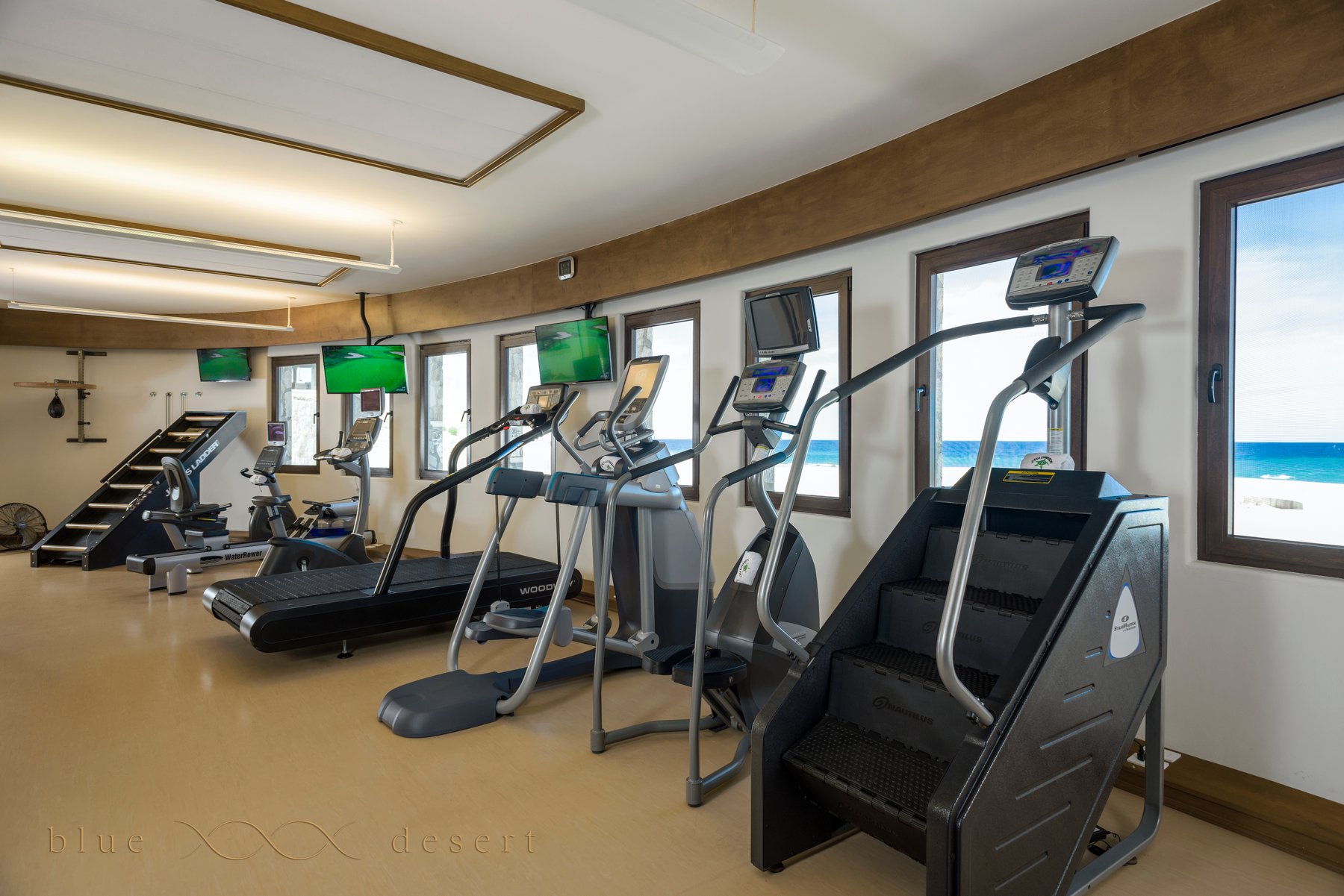 Eight bedroom suites, each with its own ensuite bathroom, give even the largest groups genuine privacy. A 12-seat dining table anchored by a fireplace sets the tone for evenings inside — unhurried, comfortable, built for conversation. What separates Casa Edwards from nearly every other villa in Los Cabos: a dedicated 3,000 square foot gym on the ground level, complete with sauna and steam room. For guests who don't want to compromise their routine for a week, this changes everything.