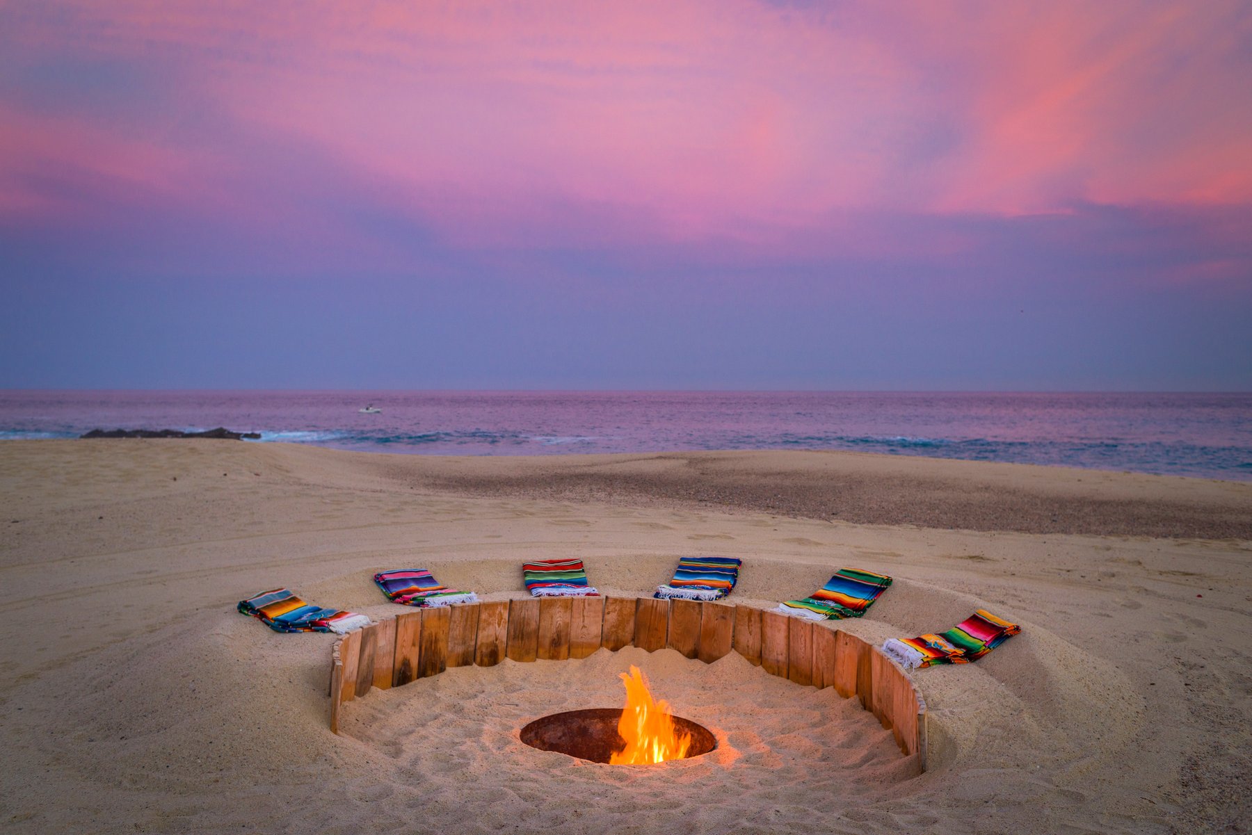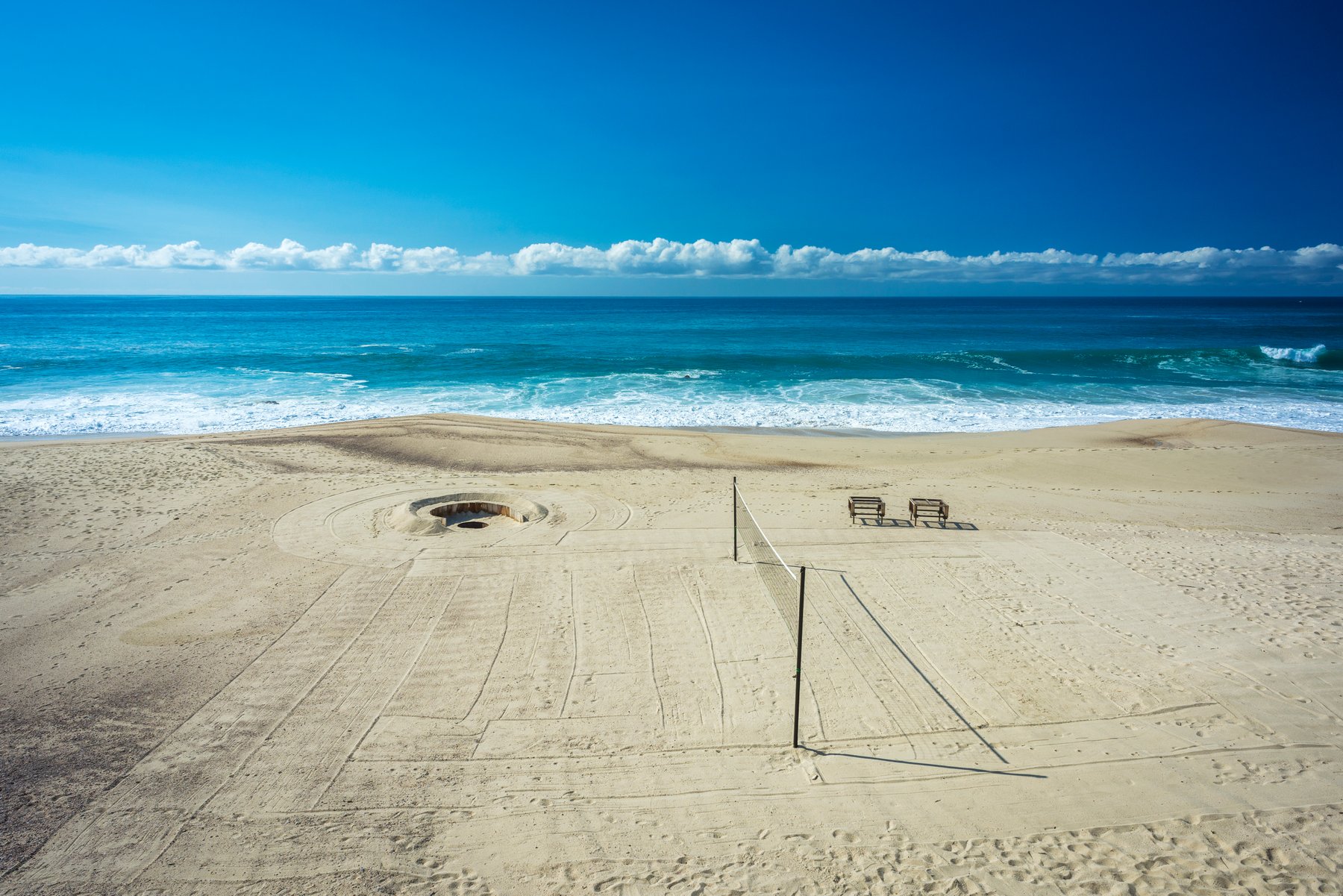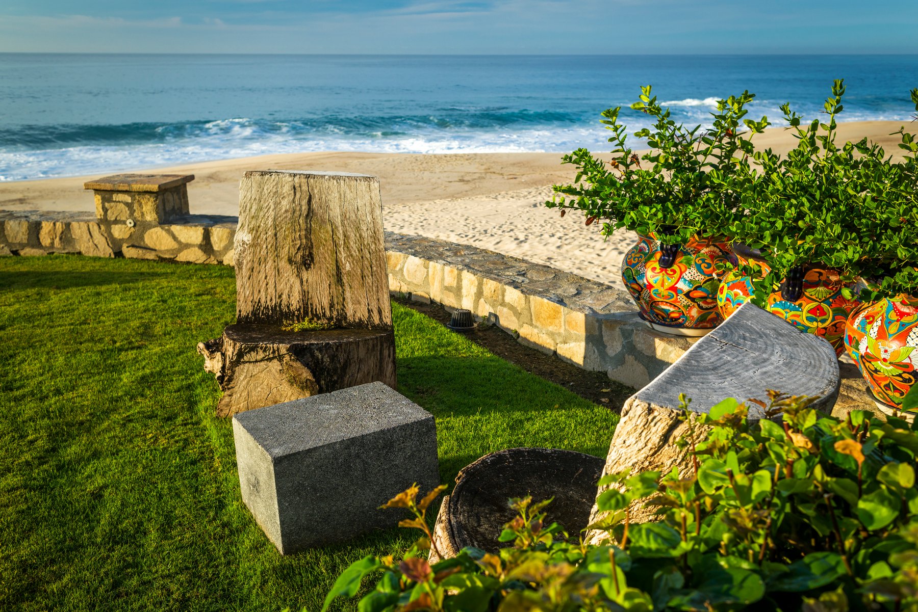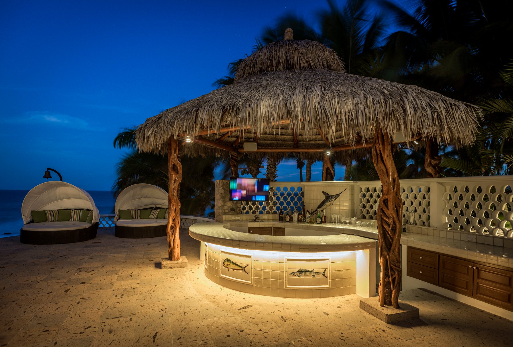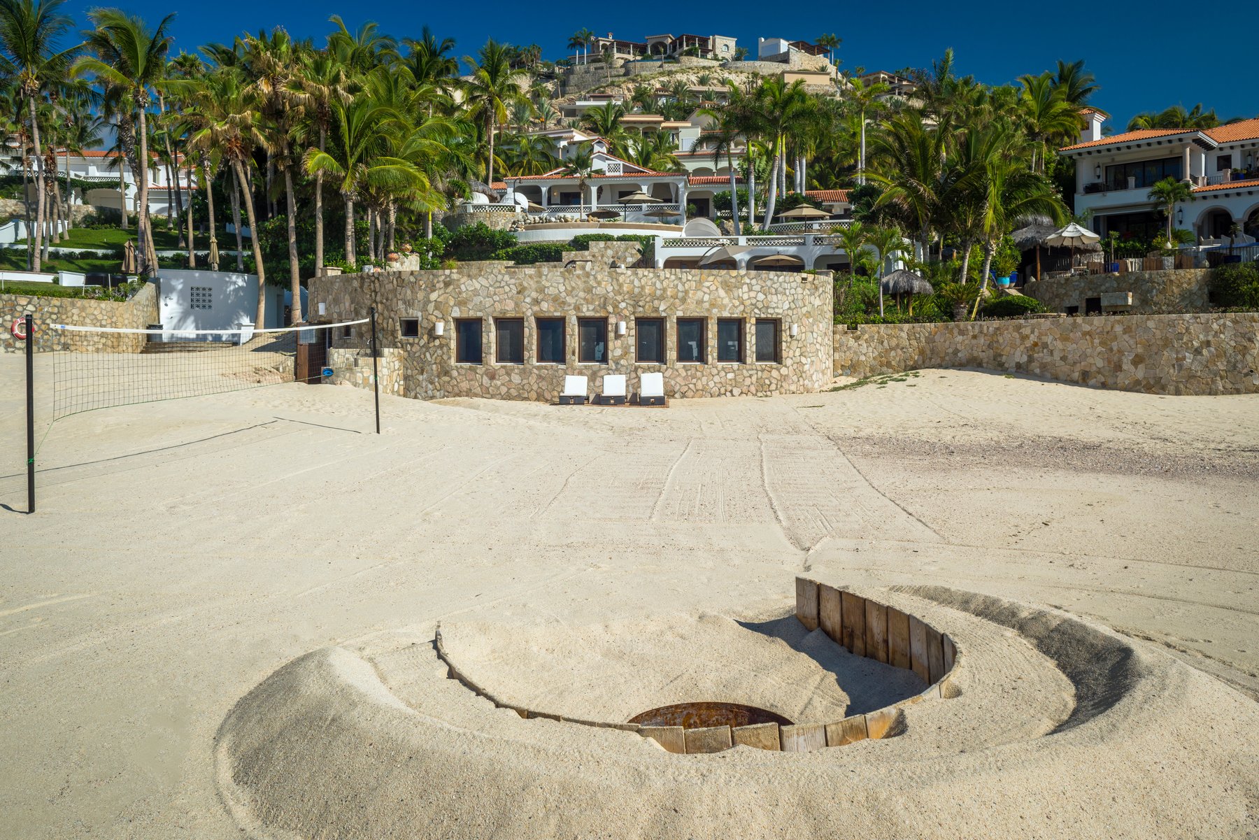 The infinity pool and jacuzzi face the beach and the Sea of Cortez without interruption. Lounge seating lines the deck generously — enough that a group of sixteen can spread out and no one is crowded. The beach is steps away and swimmable, which means afternoons here move naturally between the water and the pool, without anyone needing to organize a thing. As the light drops over the Cortez in the evening, the outdoor space becomes the place no one wants to leave.