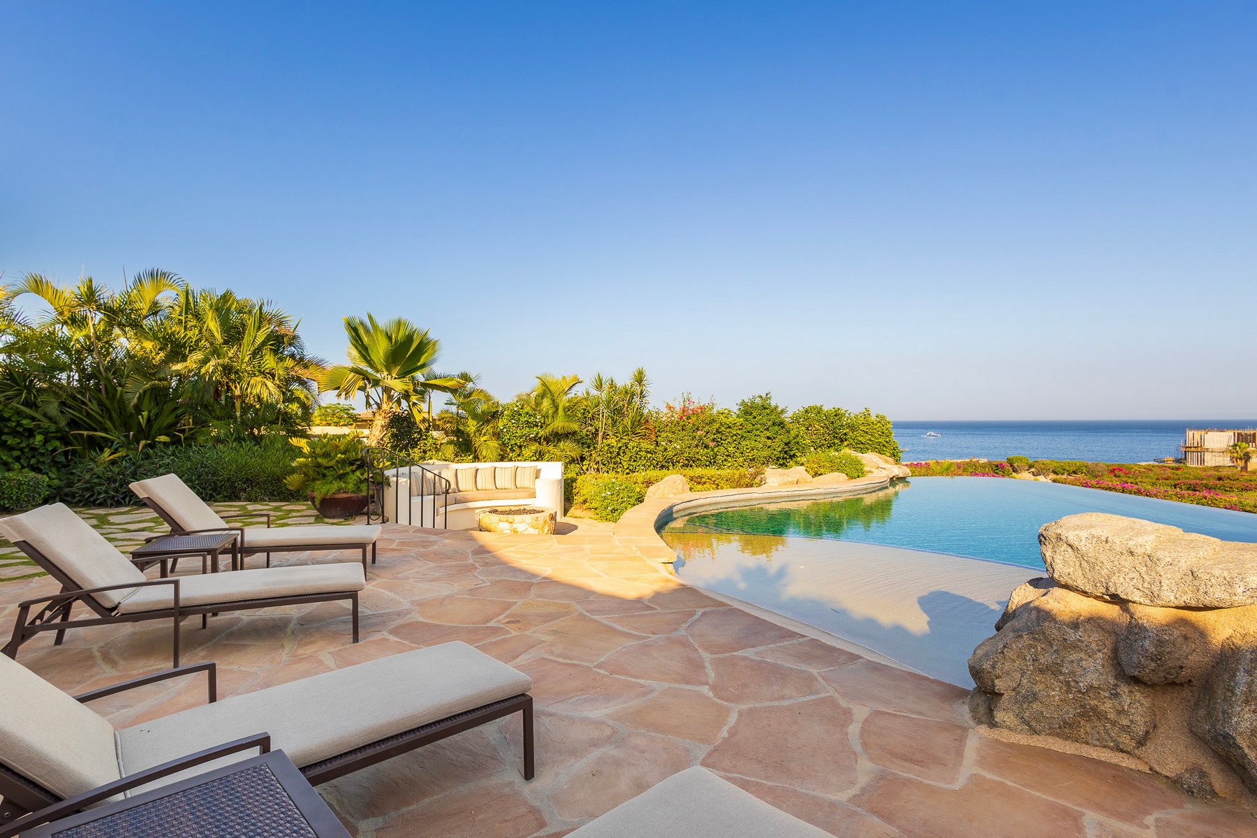 Casa Lomboy is located within the Cabo del Sol community in the Riviera section of The Cove Club, positioned to capture views of the Sea of Cortez within one of the area’s established residential enclaves. The setting combines a quieter environment with access to nearby golf and coastal amenities.