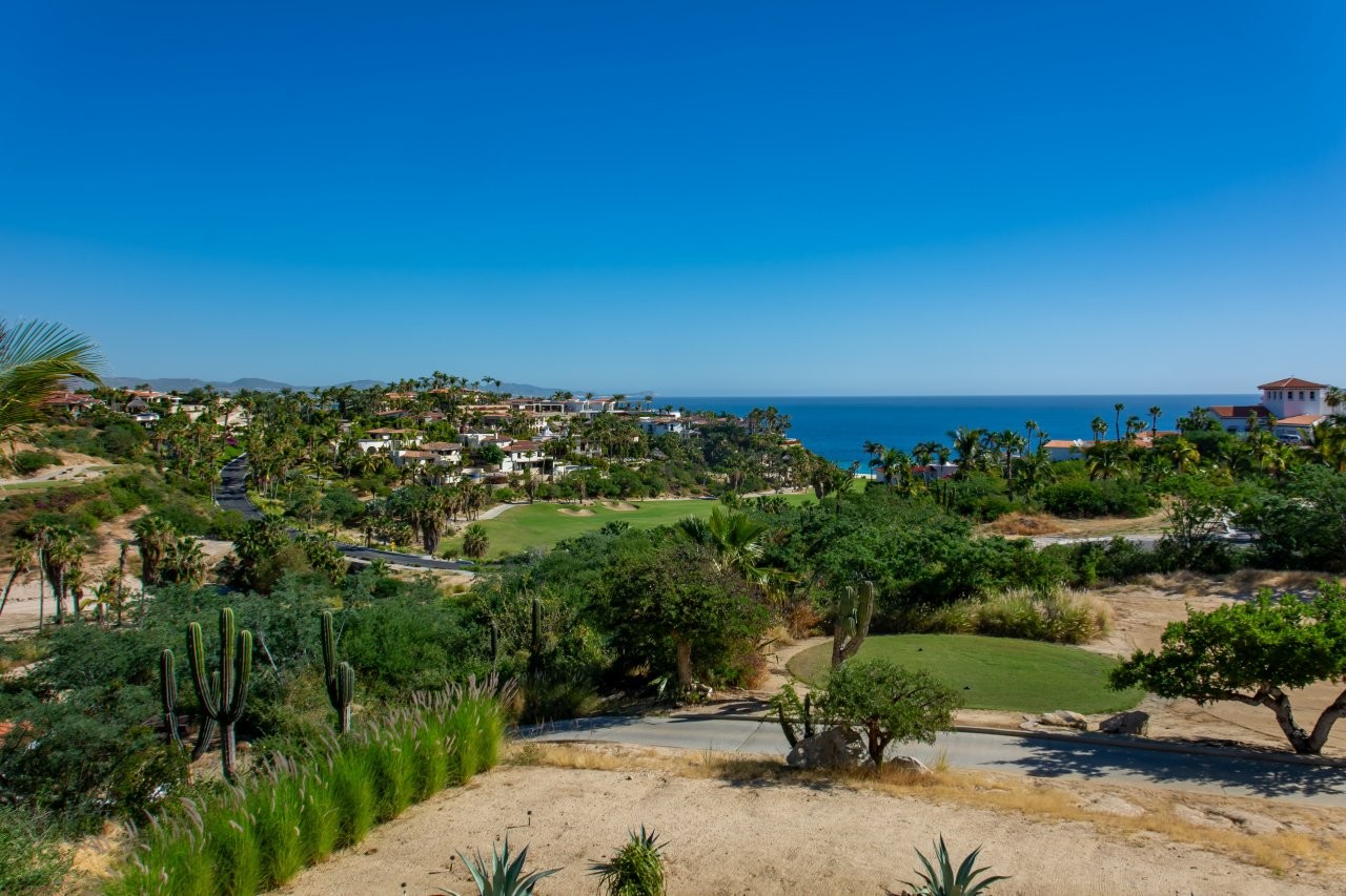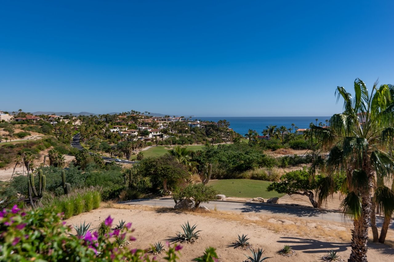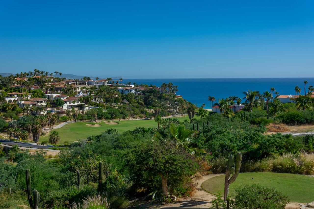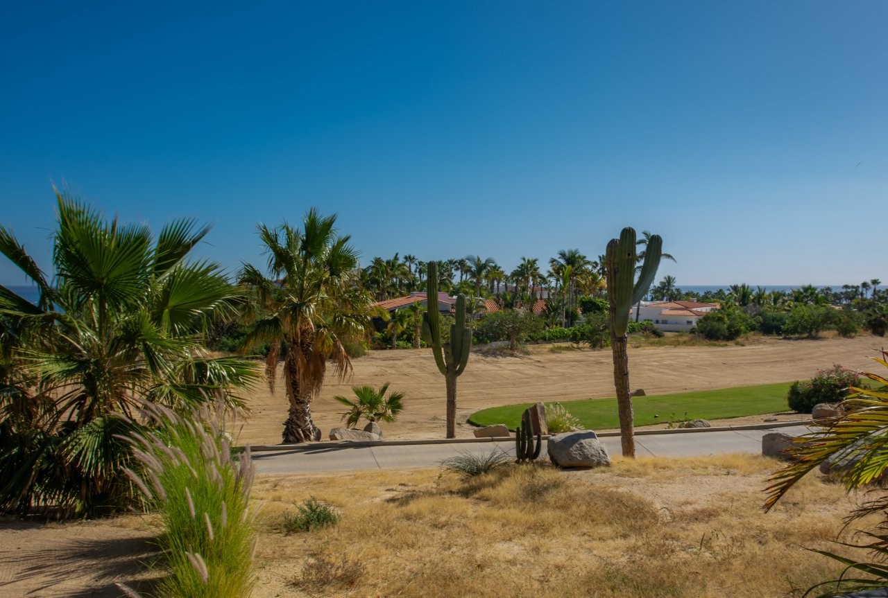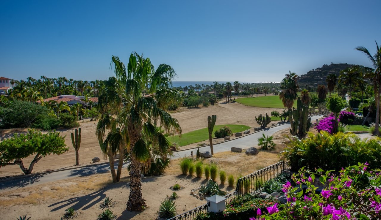 Casa Primera is a six-bedroom, eight-bath villa in the Palmilla community of San José del Cabo, 5,000 square feet with ocean and golf course views and a heated pool, jacuzzi, and wet bar on the main terrace. Sixteen guests across six bedrooms, each finished with hotel-quality linens, robes, toiletries, TV, closets, ceiling fans, and Wi-Fi. Dunes Club access is included — a private community club with pool, pickleball, tennis, spa, and gym — along with a complimentary golf cart for moving through the community.