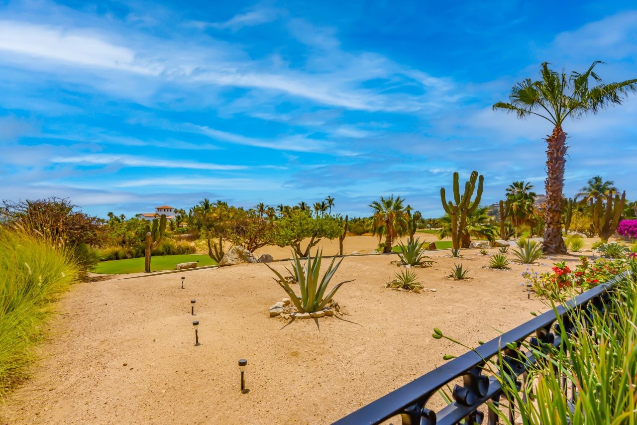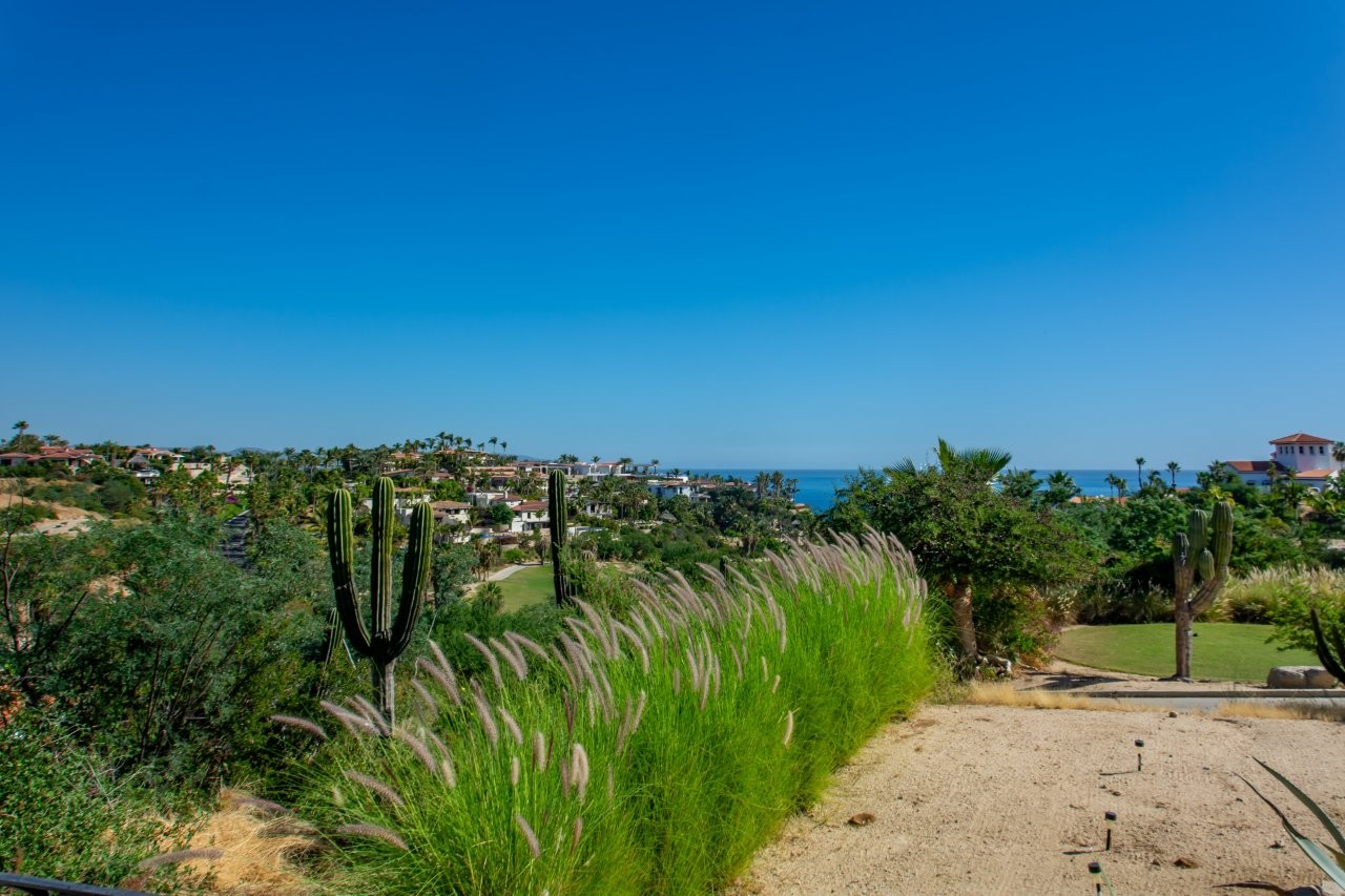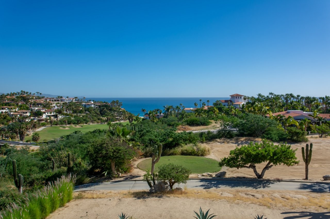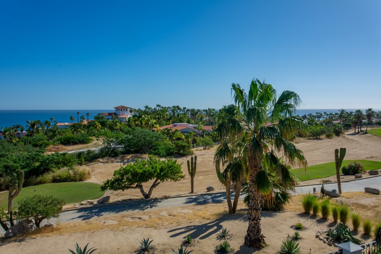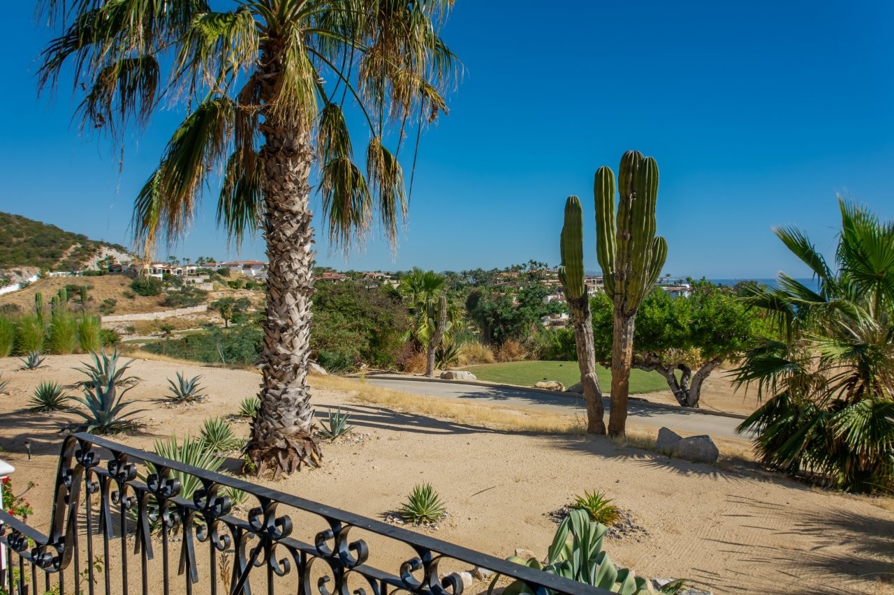 Casa Primera is a six-bedroom, eight-bath villa in the Palmilla community of San José del Cabo, 5,000 square feet with ocean and golf course views and a heated pool, jacuzzi, and wet bar on the main terrace. Sixteen guests across six bedrooms, each finished with hotel-quality linens, robes, toiletries, TV, closets, ceiling fans, and Wi-Fi. Dunes Club access is included — a private community club with pool, pickleball, tennis, spa, and gym — along with a complimentary golf cart for moving through the community.