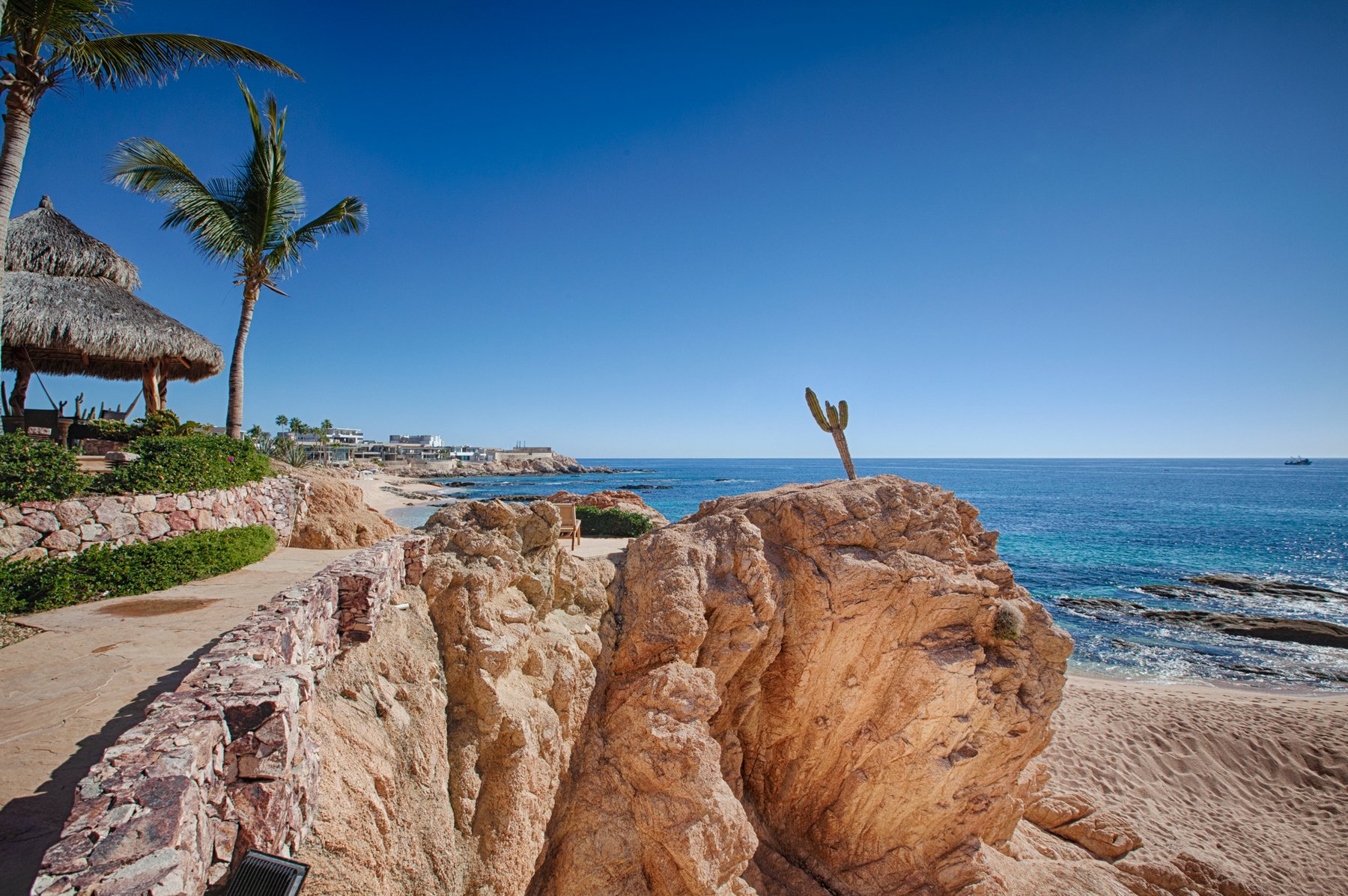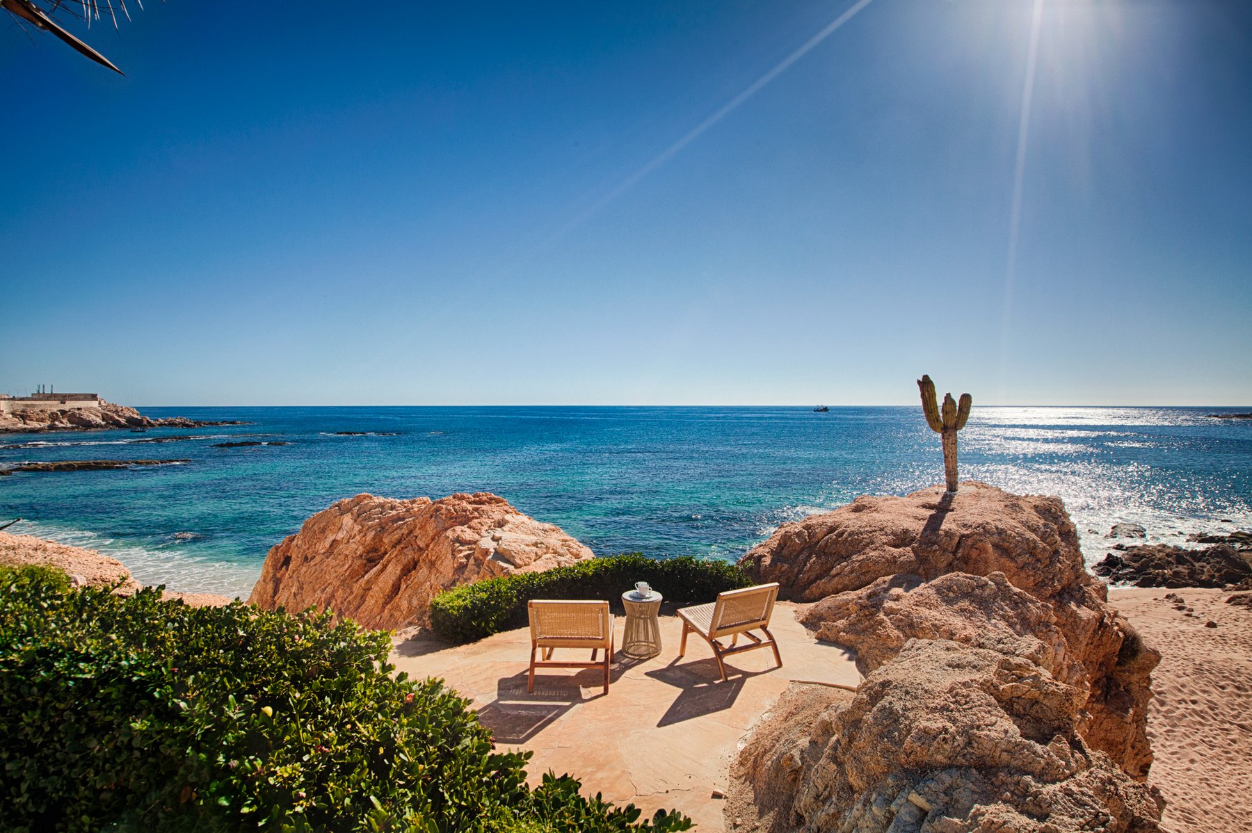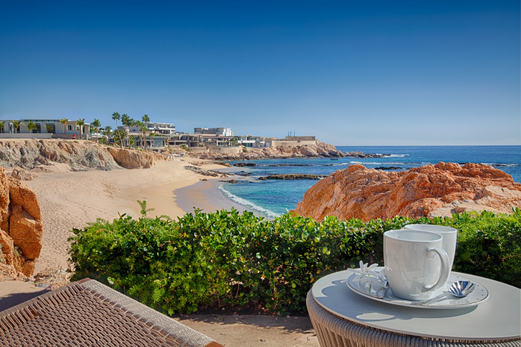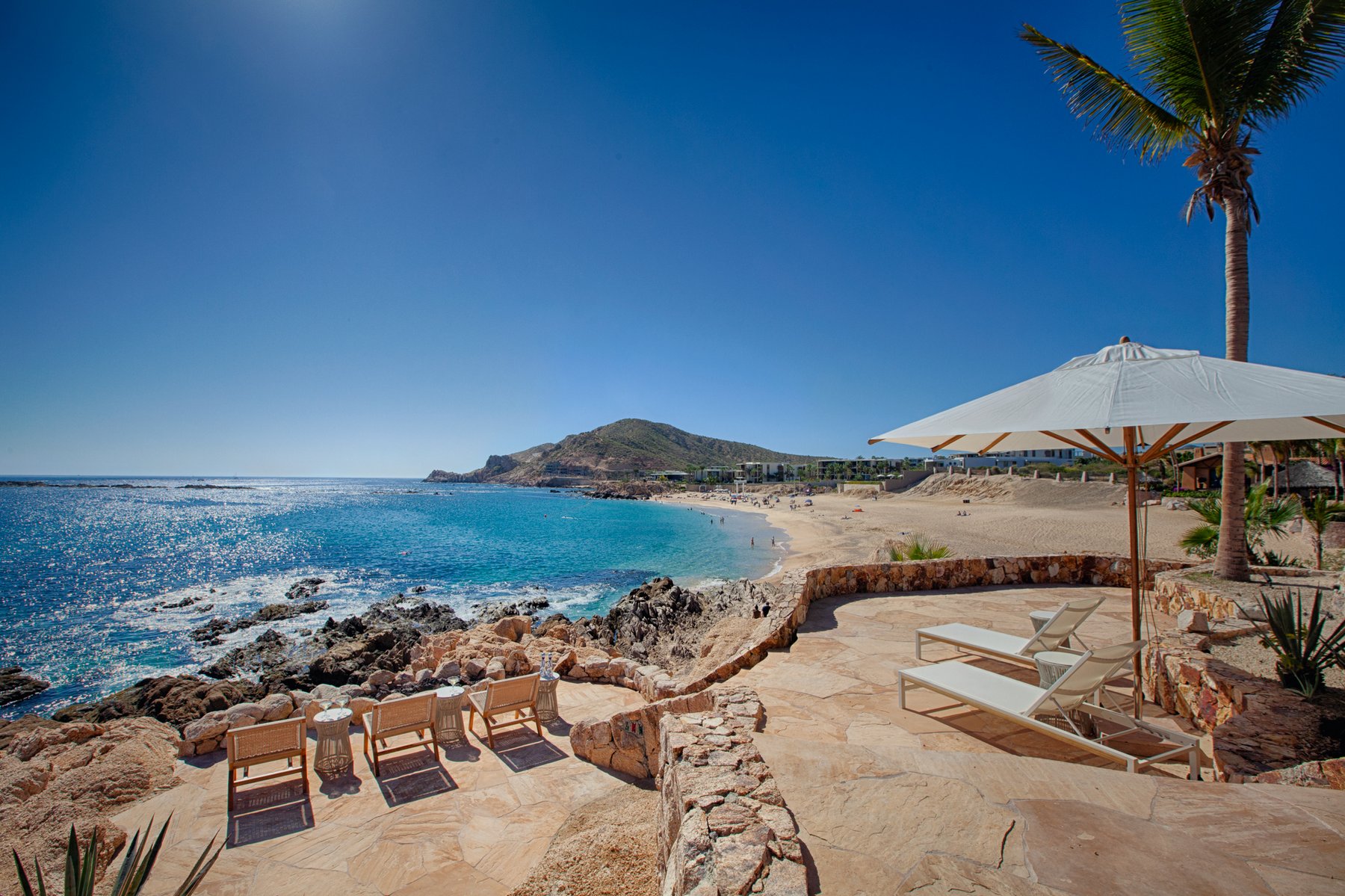 Villa Cielito is positioned on a refined point above Chileno Bay along the Los Cabos Corridor, where the view opens across a wide arc of coastline rather than focusing in a single direction. From this height, the water, hills, and bay remain visible at once, creating a setting that feels expansive without losing clarity. The location balances access between Cabo San Lucas and San José del Cabo while remaining removed from both.