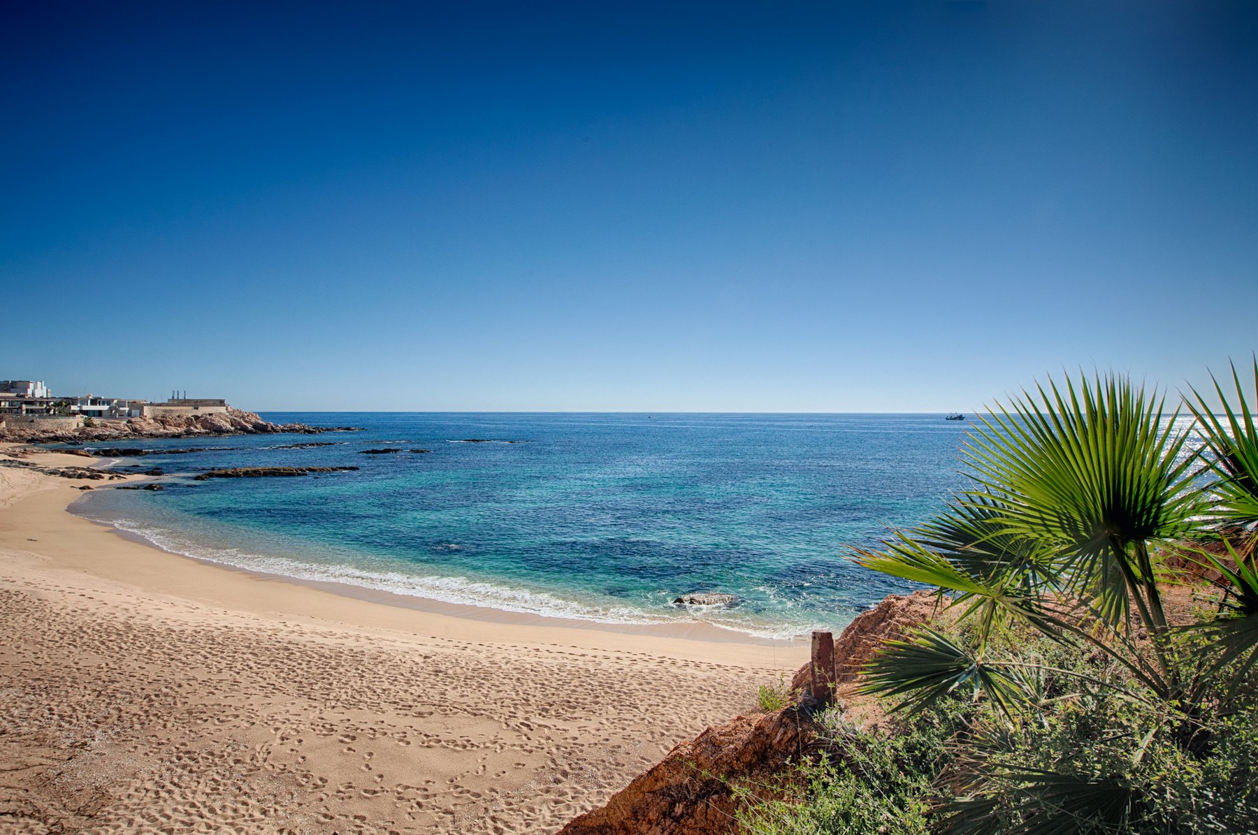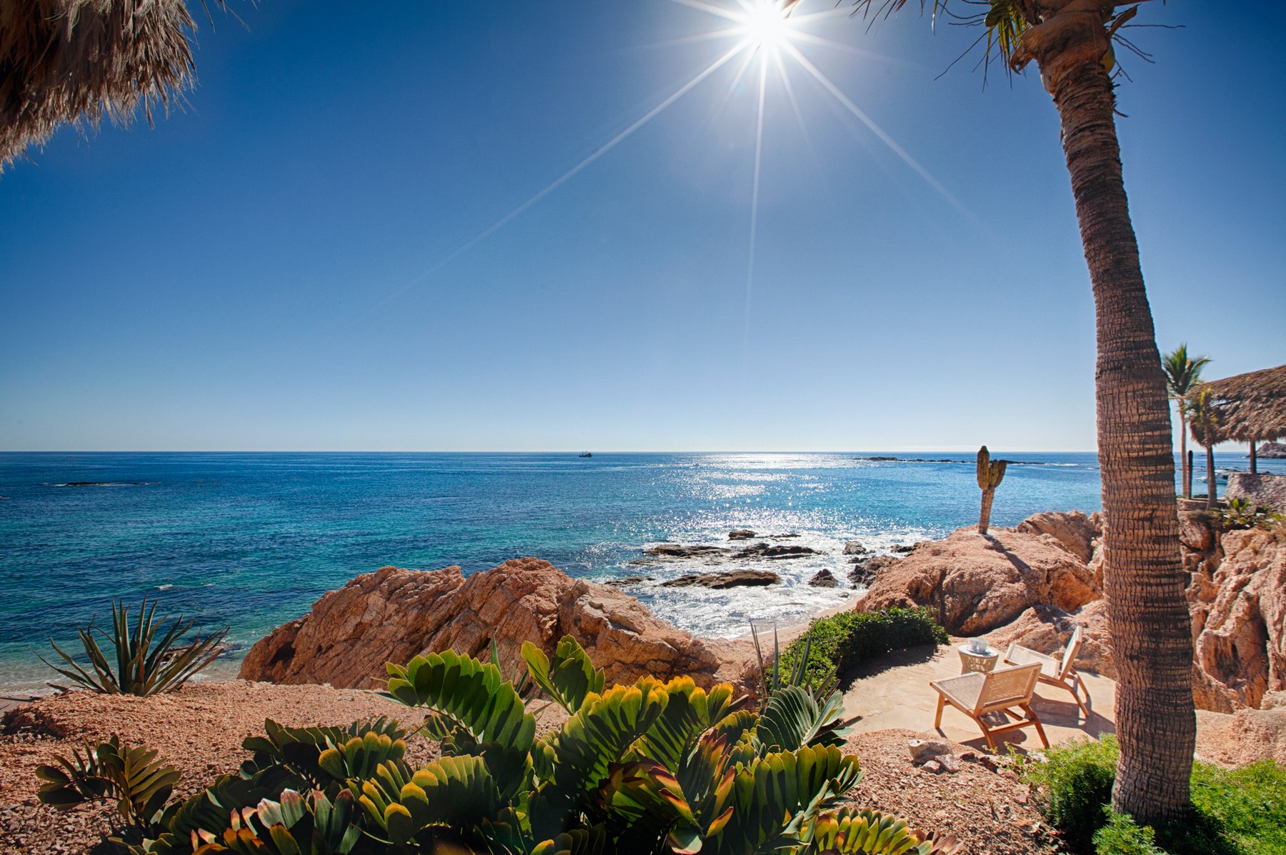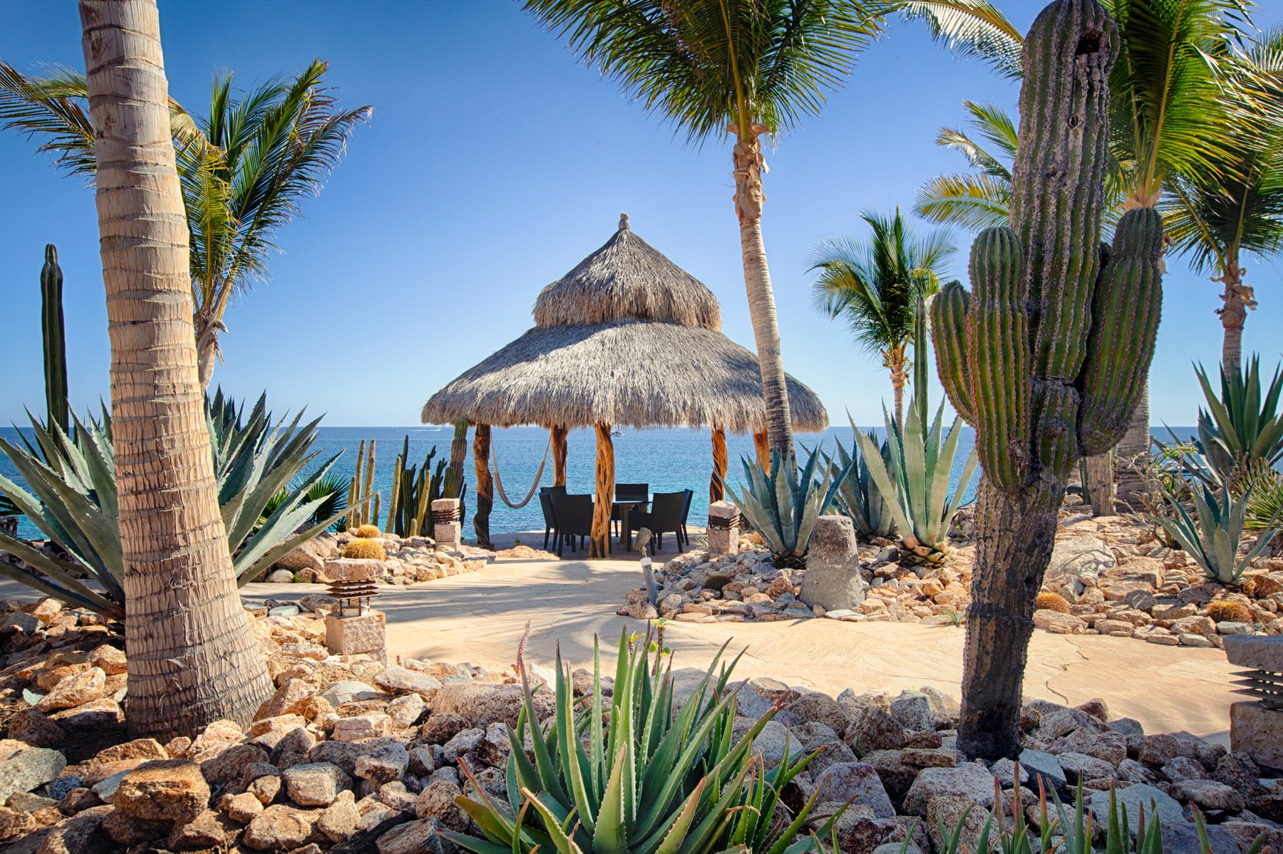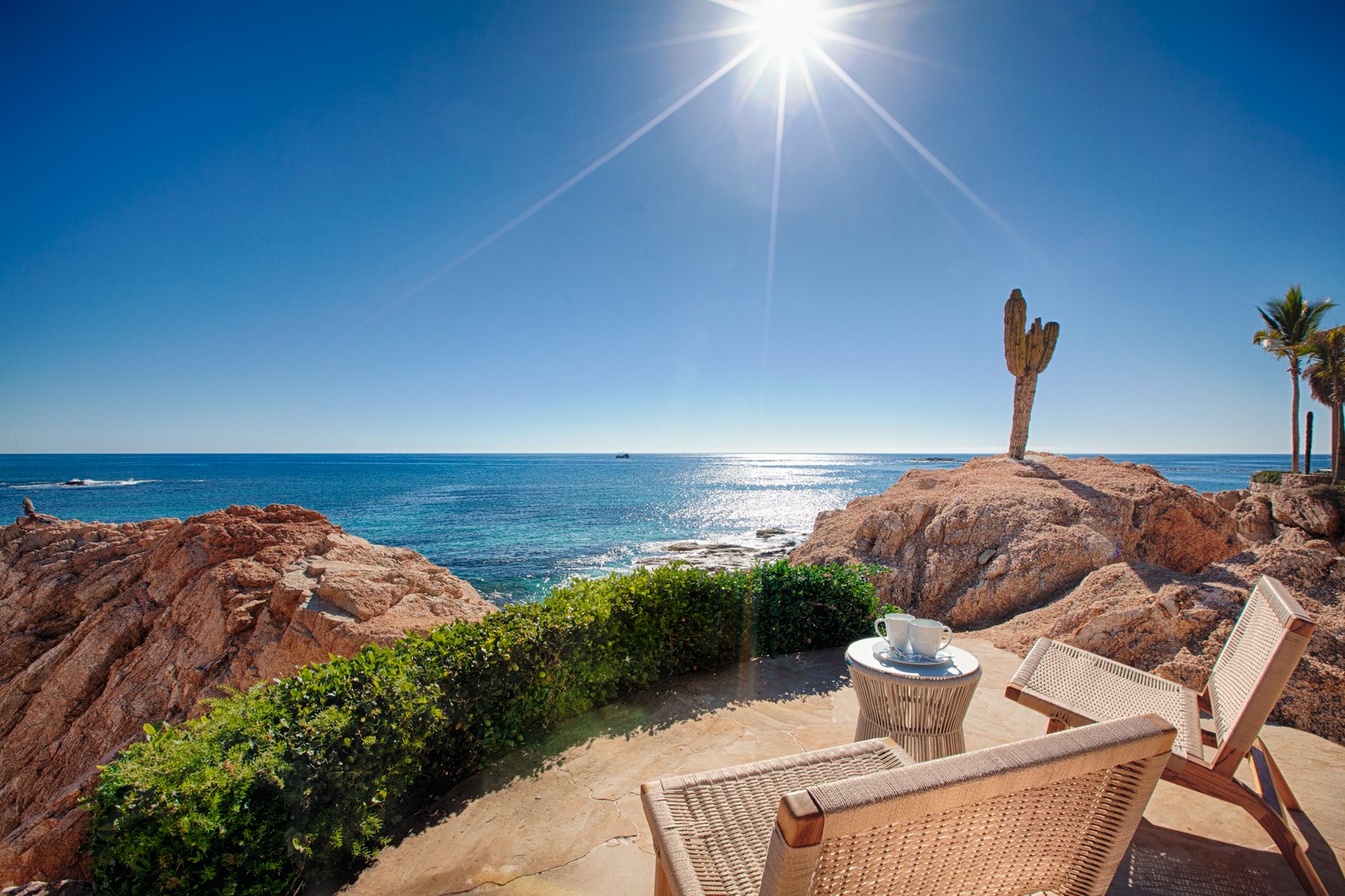 Villa Cielito is positioned on a refined point above Chileno Bay along the Los Cabos Corridor, where the view opens across a wide arc of coastline rather than focusing in a single direction. From this height, the water, hills, and bay remain visible at once, creating a setting that feels expansive without losing clarity. The location balances access between Cabo San Lucas and San José del Cabo while remaining removed from both.