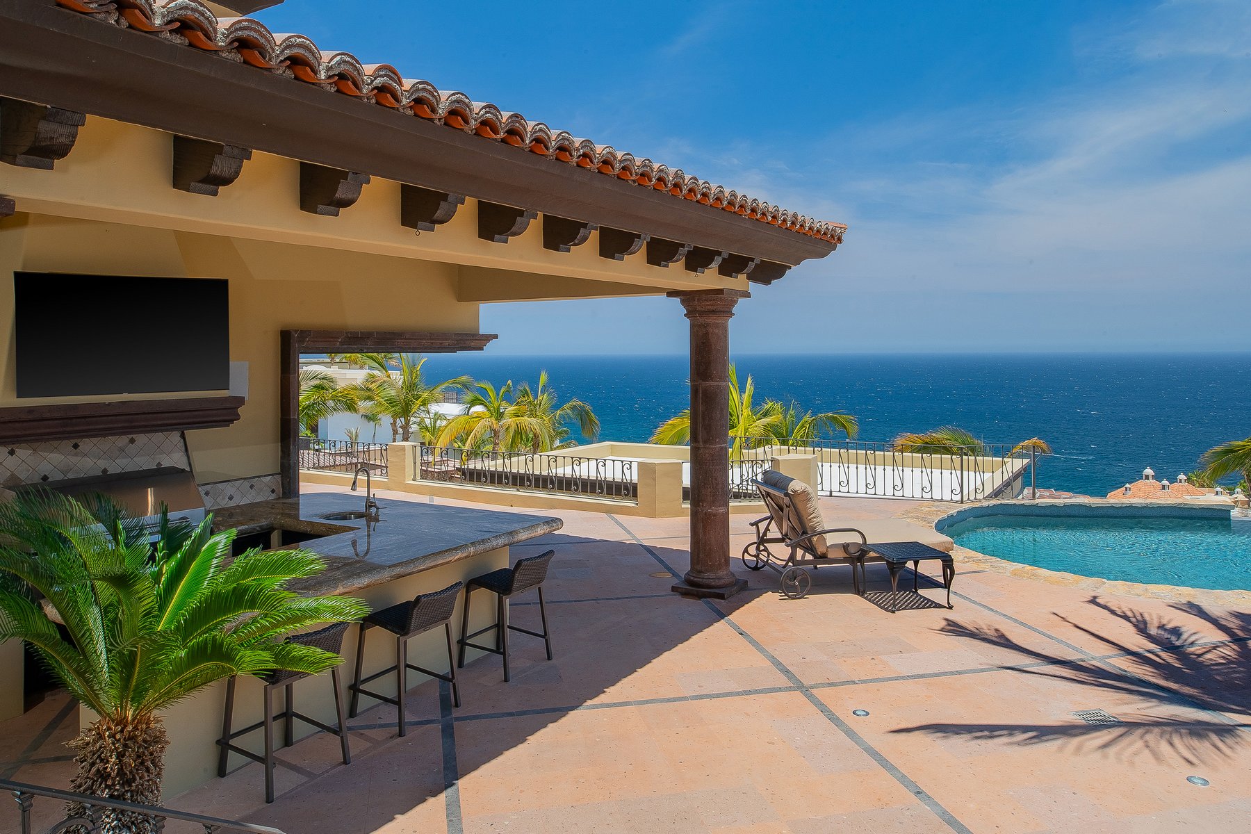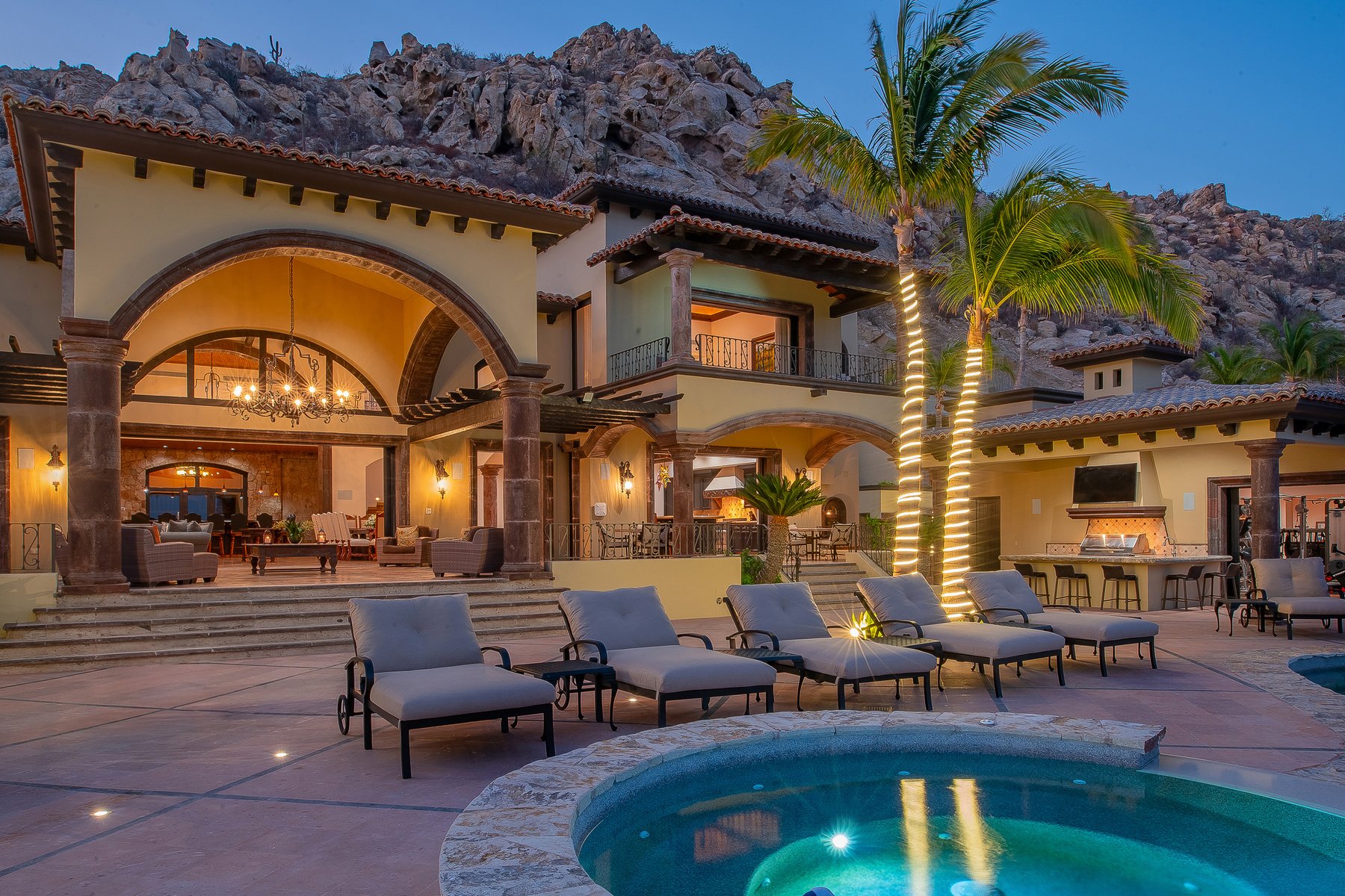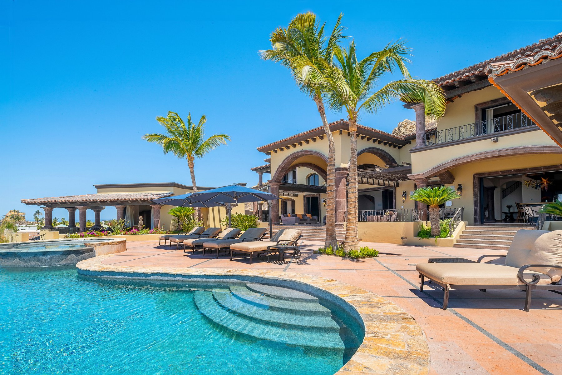 Villa de los Sueños is a strong Pedregal villa rental in Cabo San Lucas for large families or corporate groups of up to eighteen who want Spanish hacienda scale, a fitness room, billiards, a putting green, and a casita — within the gated Pedregal community directly above downtown and the marina. Our dedicated concierge team coordinates chef services, excursion planning, and all pre-arrival logistics so that a group this size arrives to a stay that is already organized.