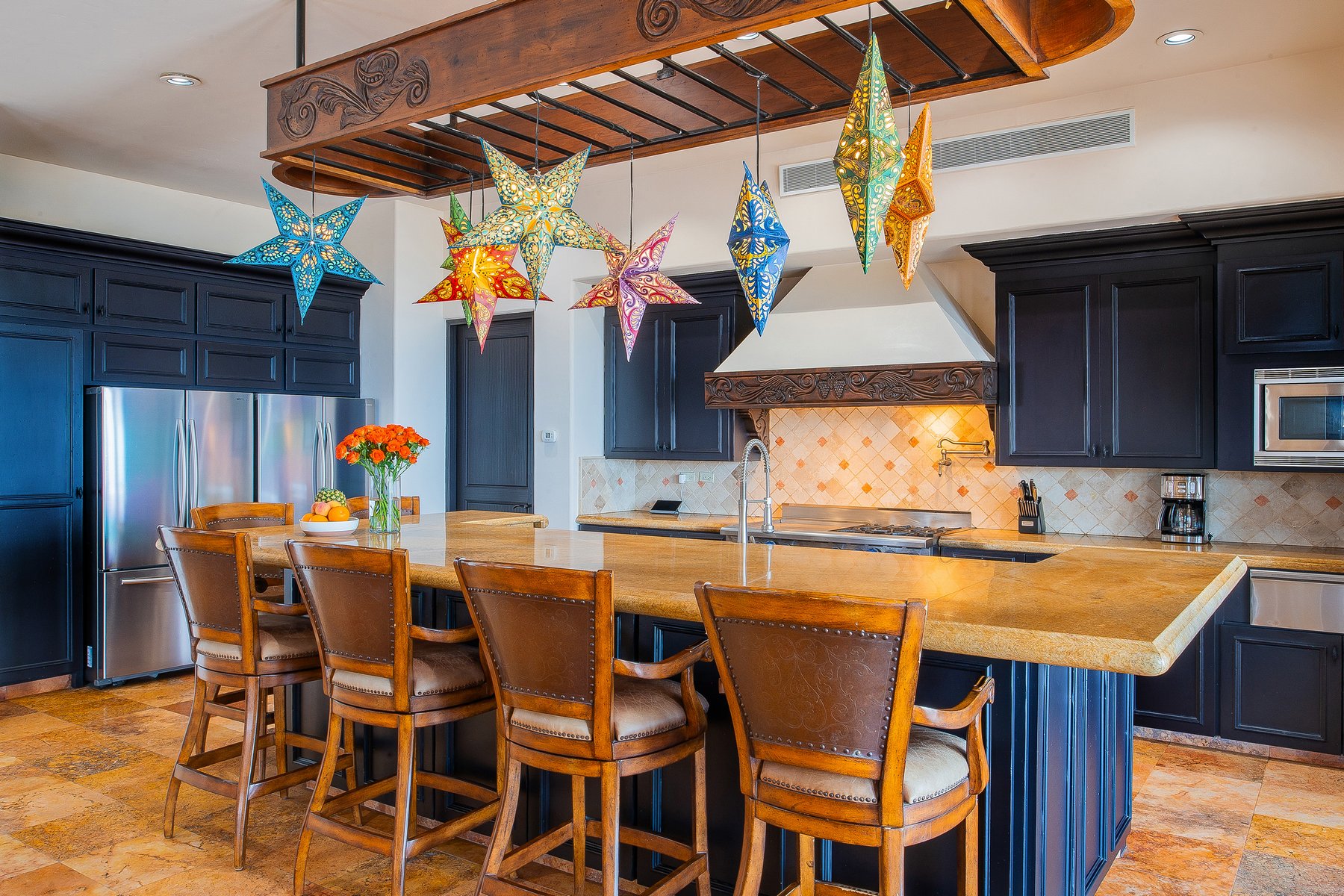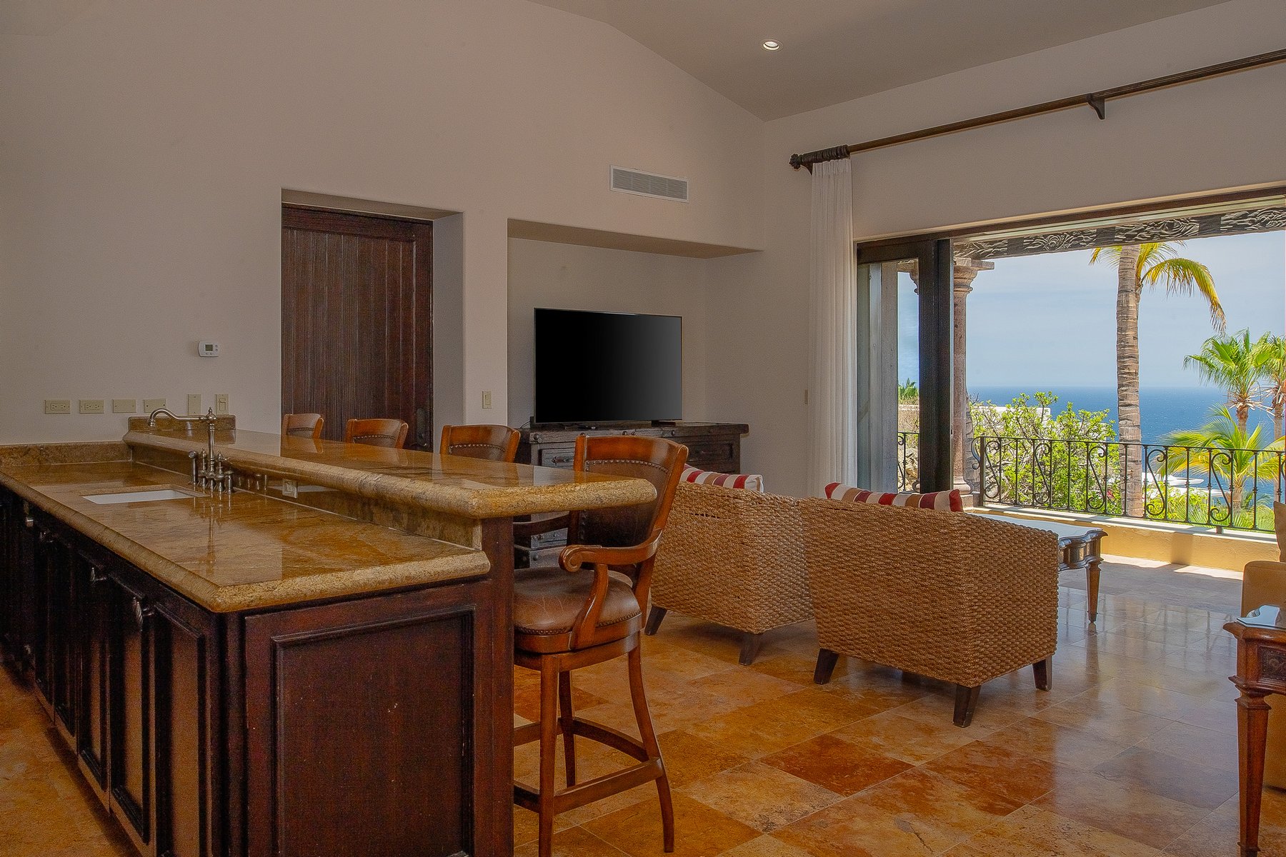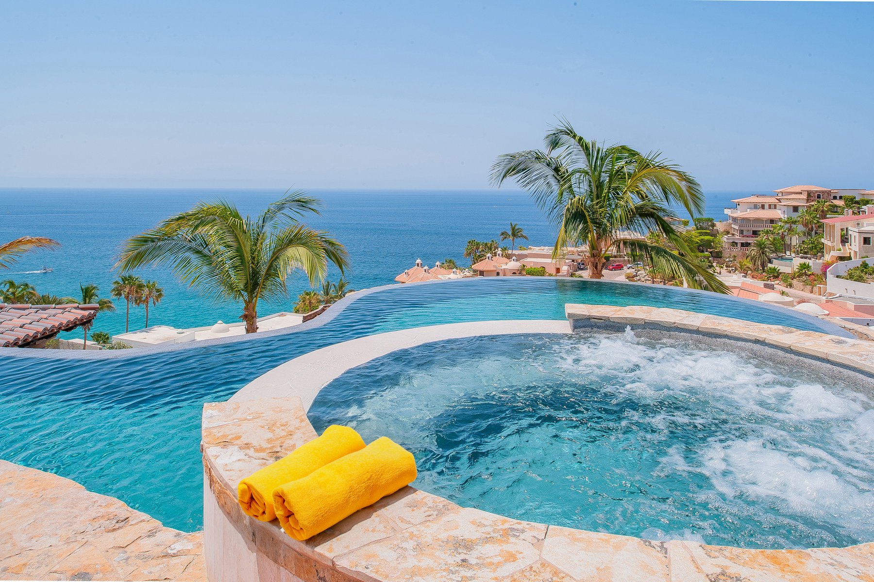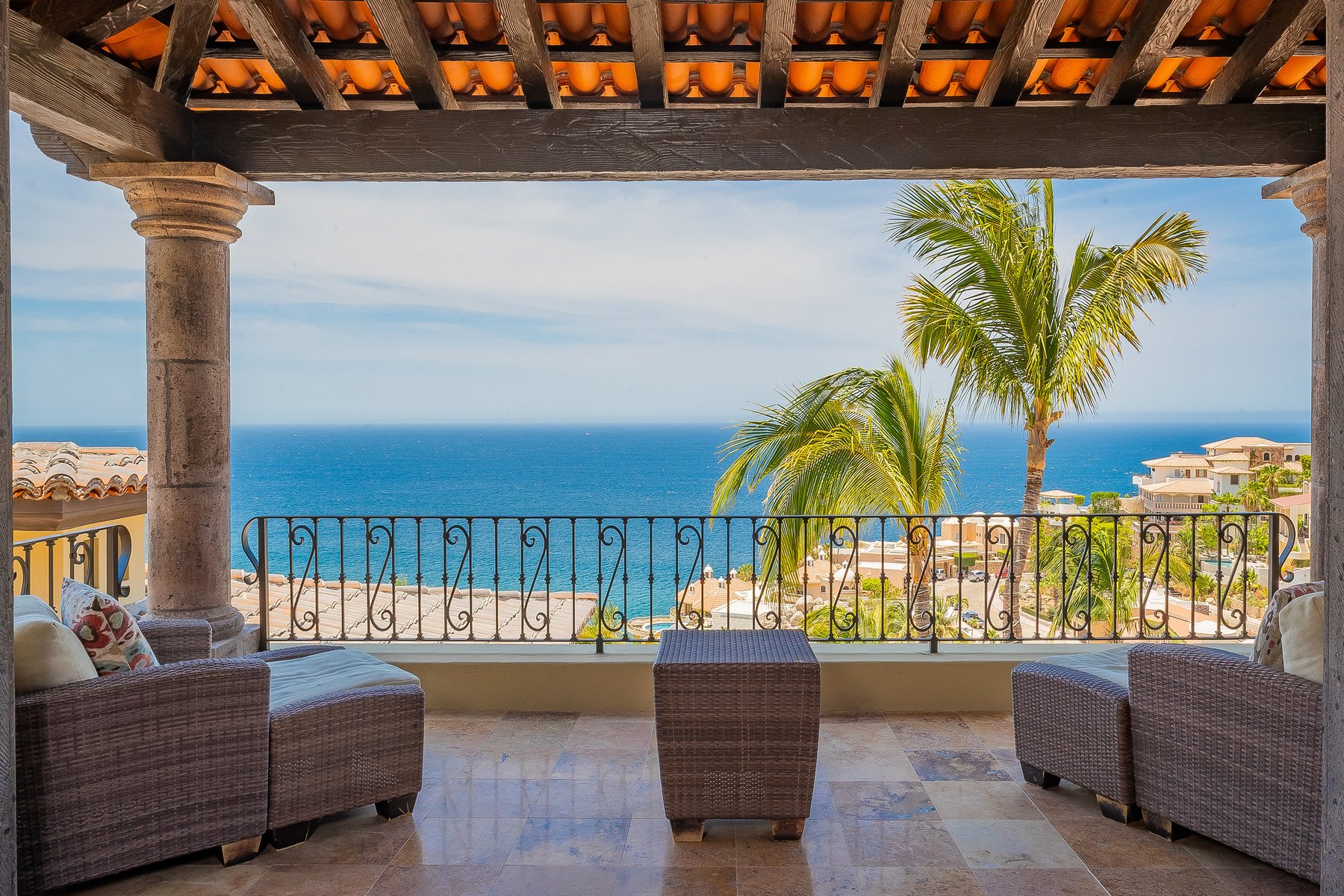 Villa de los Sueños is a strong Pedregal villa rental in Cabo San Lucas for large families or corporate groups of up to eighteen who want Spanish hacienda scale, a fitness room, billiards, a putting green, and a casita — within the gated Pedregal community directly above downtown and the marina. Our dedicated concierge team coordinates chef services, excursion planning, and all pre-arrival logistics so that a group this size arrives to a stay that is already organized.