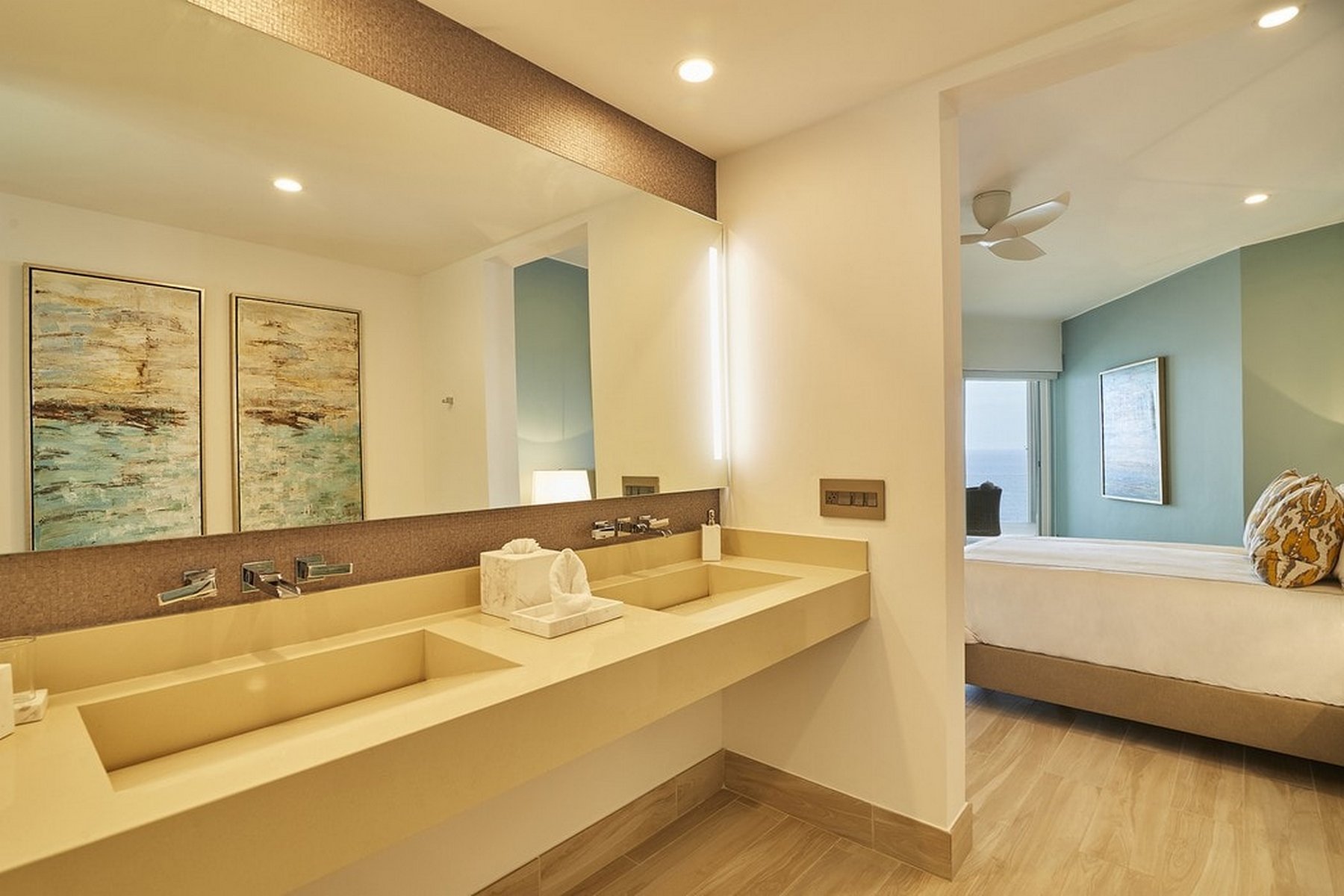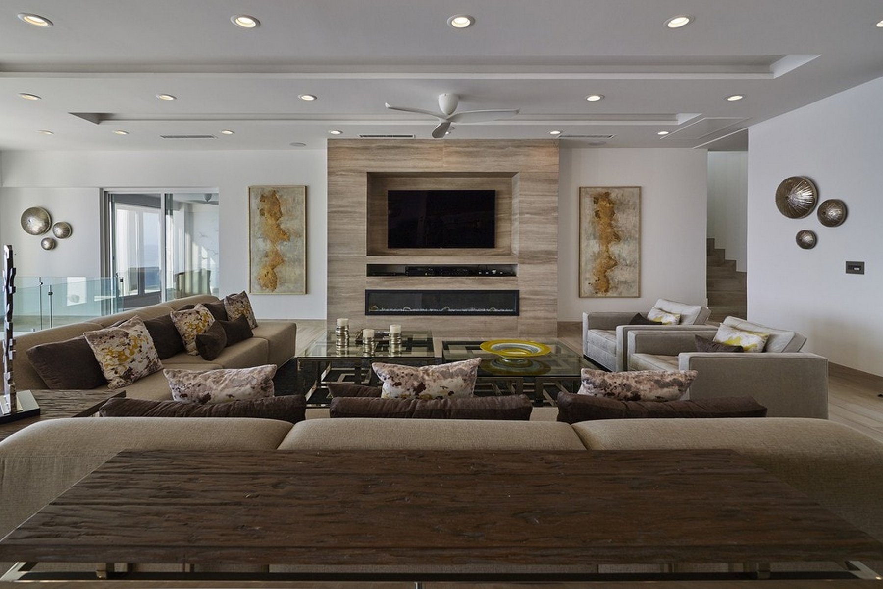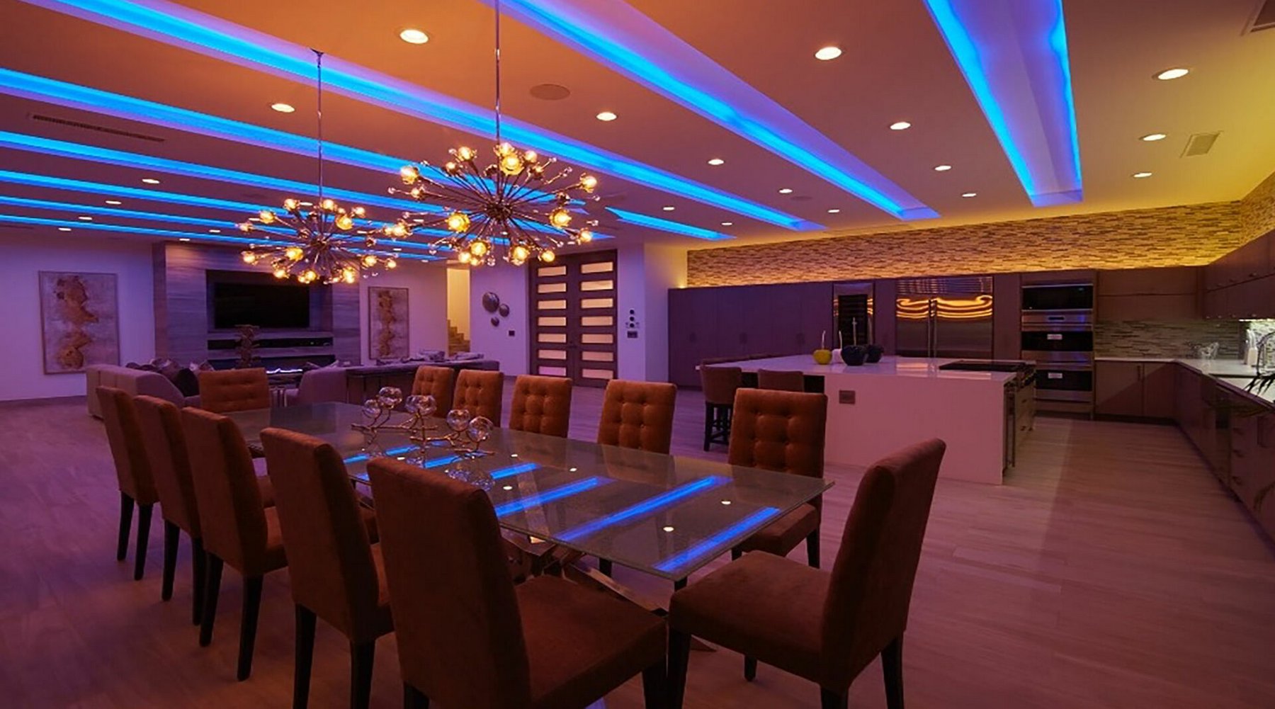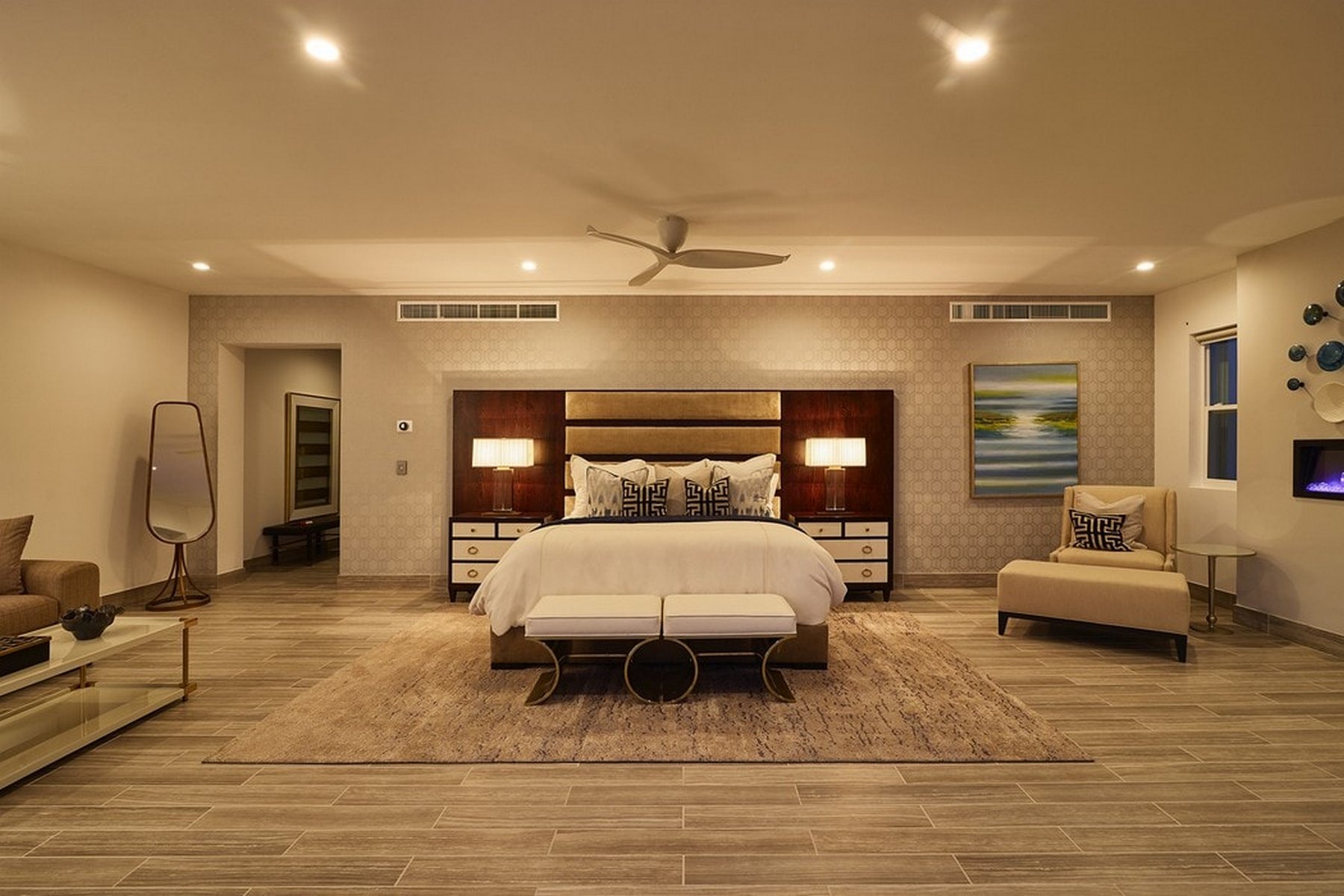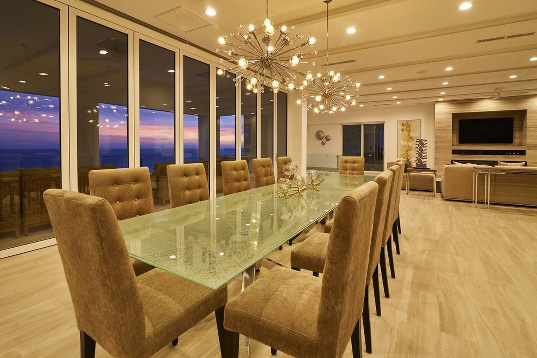 Inside, the amenities are oriented toward entertainment. A billiard table, ping-pong, a full home gym, SONOS surround sound throughout, and LED lighting that adjusts to the mood of the evening give a group of sixteen plenty to work with over multiple days without the property ever feeling repetitive. Fireplaces add warmth to the common areas on Pedregal evenings when the air cools.
