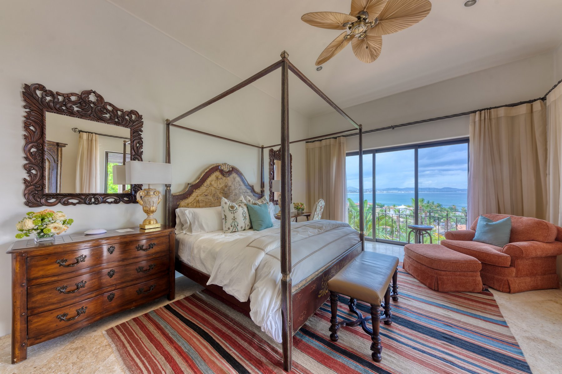 Villa Solana is a four-bedroom villa rental in the Villas Del Mar community above Palmilla in San José del Cabo — 5,500 square feet on the hillside with Sea of Cortez views across the Bay of Palmilla and the surrounding coastline. Four bedrooms, four baths, eight guests. A golf cart comes with the stay. The One & Only Palmilla's restaurants, bars, spa, and golf course are accessible with advance reservations; the community gym in Phase 4 of Villas Del Mar is available throughout.